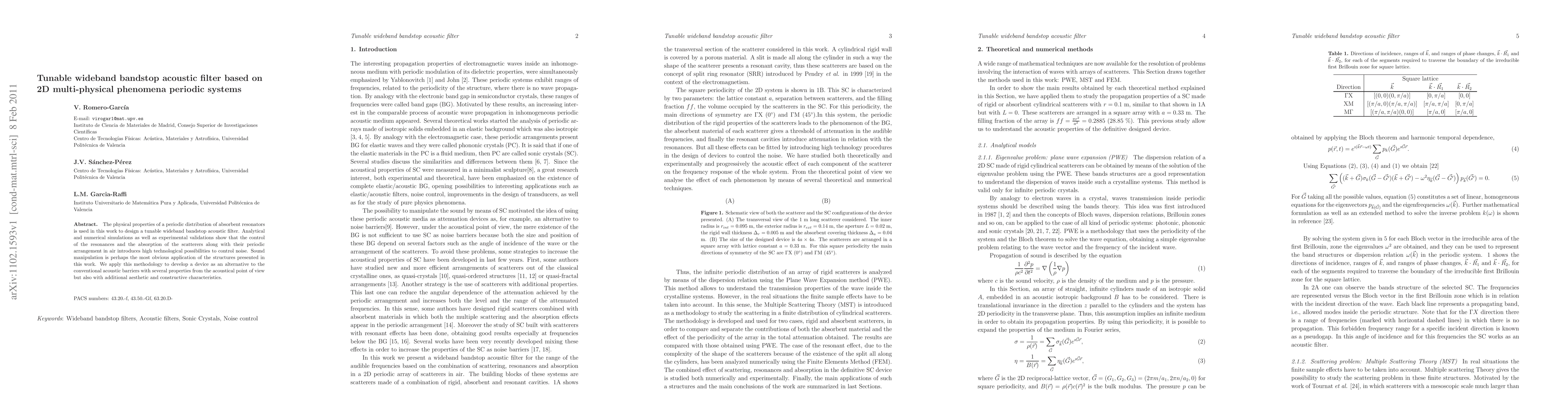 The physical properties of a periodic distribution of absorbent resonators is used in this work to design a tunable wideband bandstop acoustic filter. Analytical and numerical simulations as well as experimental validations show that the control of the resonances and the absorption of the scatterers along with their periodic arrangement in air introduces high technological possibilities to control noise. Sound manipulation is perhaps the most obvious application of the structures presented in this work. We apply this methodology to develop a device as an alternative to the conventional acoustic barriers with several properties from the acoustical point of view but also with additional aesthetic and constructive characteristics.