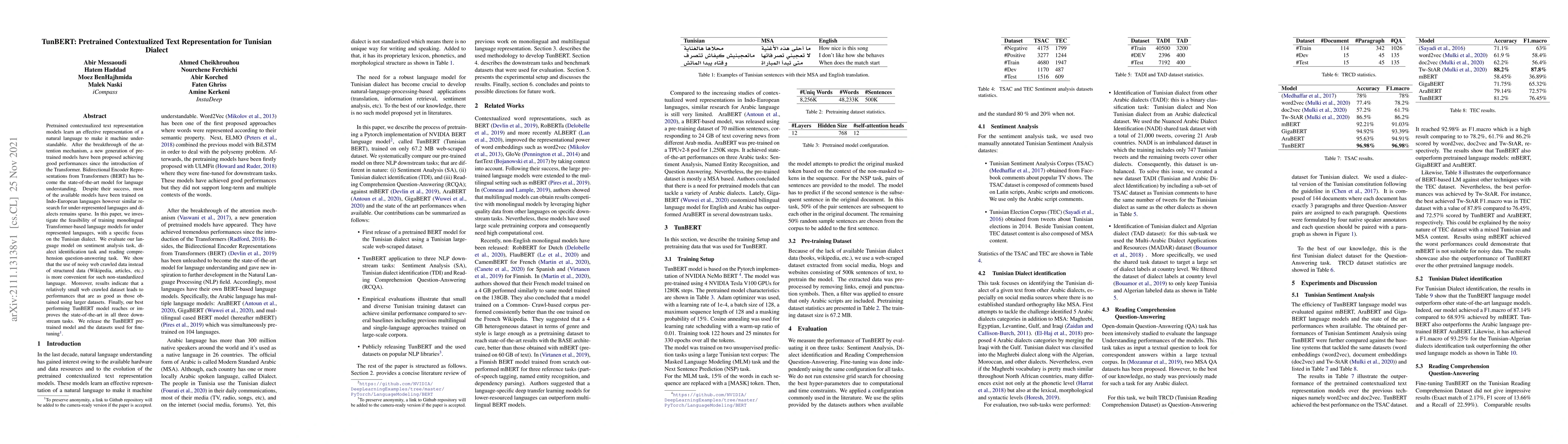 This paper explores training a pretrained Transformer-based model for the Tunisian dialect, demonstrating its effectiveness on sentiment analysis, dialect identification, and reading comprehension tasks. The study finds that web-crawled data is more suitable for this under-represented language, achieving competitive results with smaller datasets.
