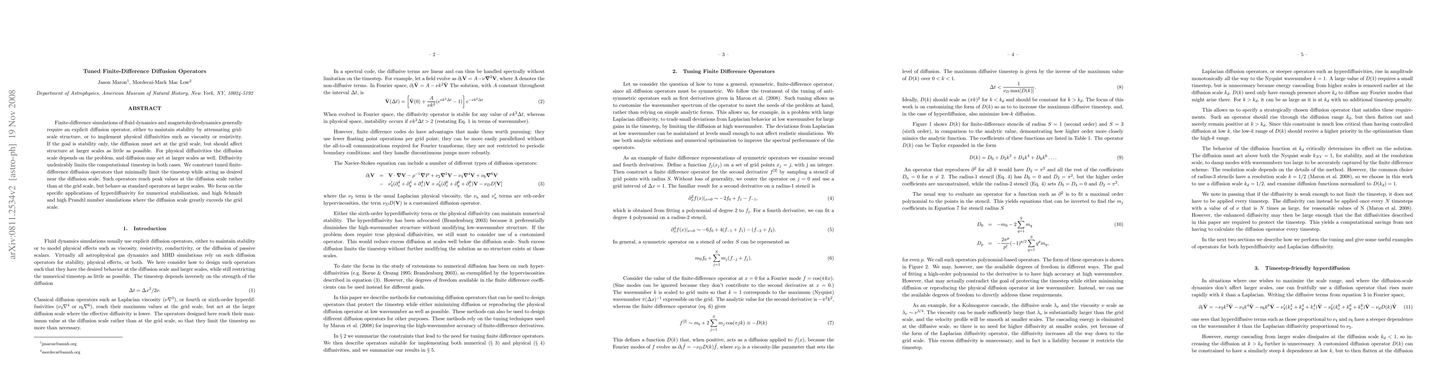 Finite-difference simulations of fluid dynamics and magnetohydrodynamics generally require an explicit diffusion operator, either to maintain stability by attenuating grid-scale structure, or to implement physical diffusivities such as viscosity or resistivity. If the goal is stability only, the diffusion must act at the grid scale, but should affect structure at larger scales as little as possible. For physical diffusivities the diffusion scale depends on the problem, and diffusion may act at larger scales as well. Diffusivity undesirably limits the computational timestep in both cases. We construct tuned finite-difference diffusion operators that minimally limit the timestep while acting as desired near the diffusion scale. Such operators reach peak values at the diffusion scale rather than at the grid scale, but behave as standard operators at larger scales. We focus on the specific applications of hyperdiffusivity for numerical stabilization, and high Schmidt and high Prandtl number simulations where the diffusion scale greatly exceeds the grid scale.