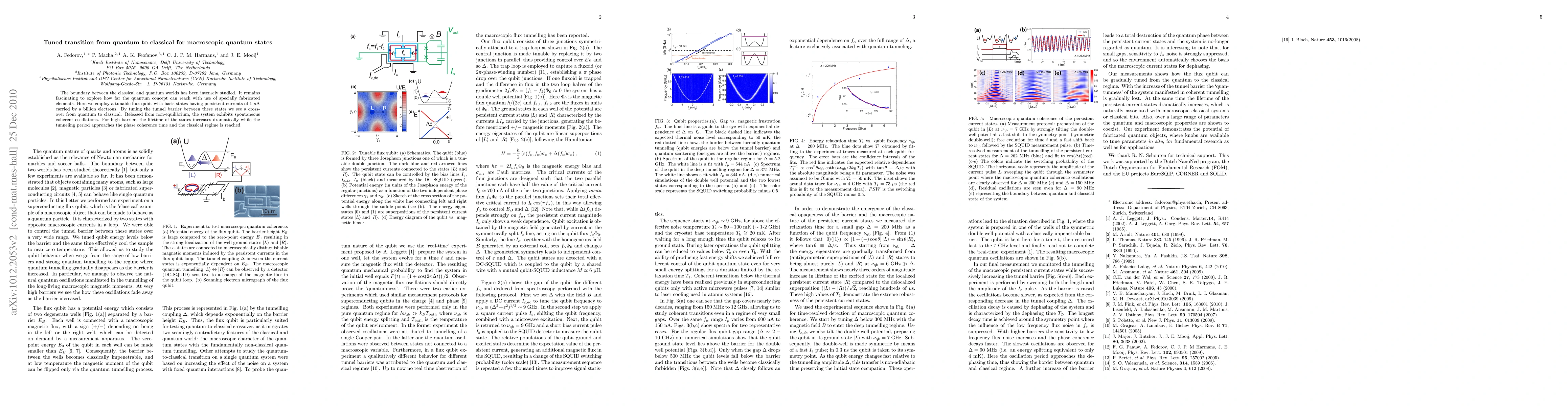 The boundary between the classical and quantum worlds has been intensely studied. It remains fascinating to explore how far the quantum concept can reach with use of specially fabricated elements. Here we employ a tunable flux qubit with basis states having persistent currents of 1$ \mu$A carried by a billion electrons. By tuning the tunnel barrier between these states we see a cross-over from quantum to classical. Released from non-equilibrium, the system exhibits spontaneous coherent oscillations. For high barriers the lifetime of the states increases dramatically while the tunneling period approaches the phase coherence time and the classical regime is reached.
