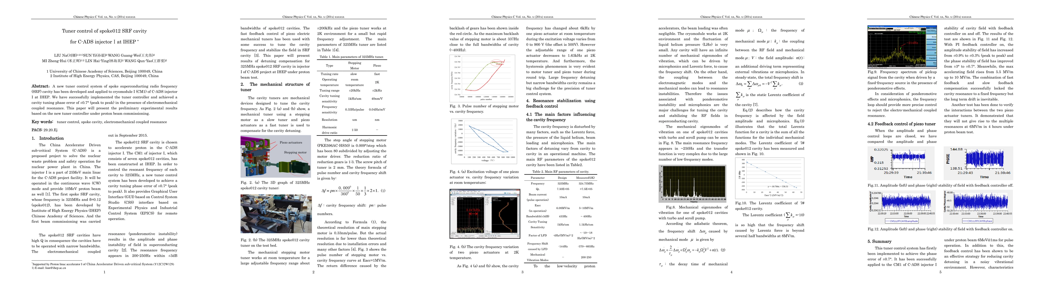 A new tuner control system of spoke superconducting radio frequency (SRF) cavity has been developed and applied to cryomodule I (CM1) of C-ADS injector I at IHEP. We have successfully implemented the tuner controllerfor the first time and achieved a cavity tuning phase error of 0.7degrees (about 4 Hz peak to peak) in the presence of electromechanical coupled resonance. This paper will present the preliminary experimental results based on the new tuner controller under proton beam commissioning.