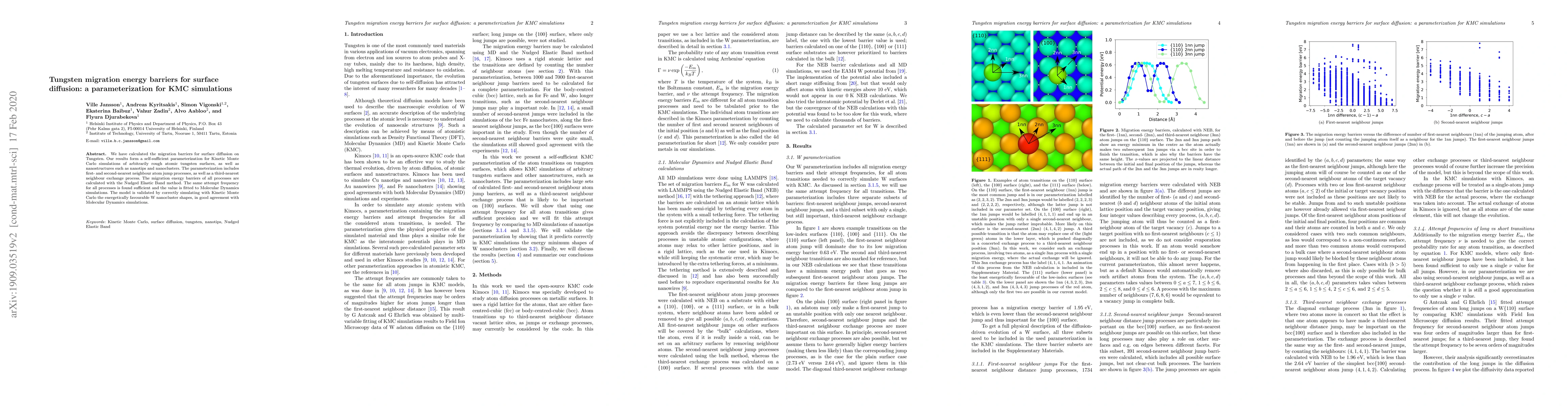 Researchers created a parameterization for simulating tungsten surface diffusion using Kinetic Monte Carlo simulations, allowing for accurate modeling of nanoclusters and nanostructures.
