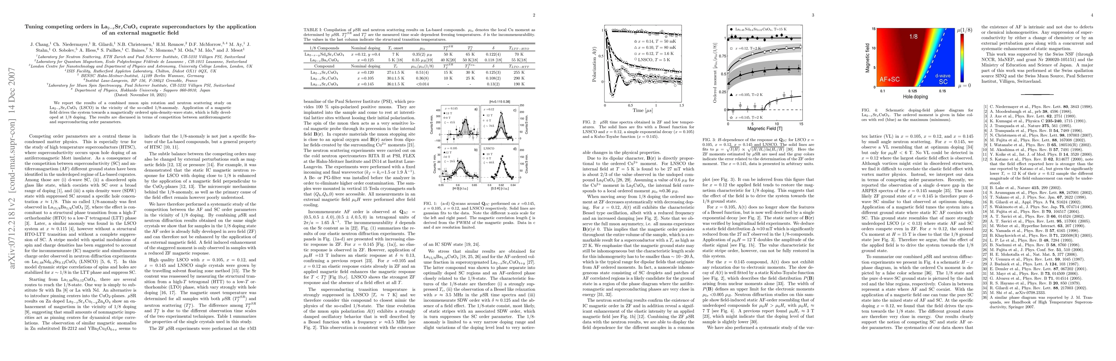 This study investigates La2-xSrxCuO4 cuprate superconductors near the 1/8-anomaly using muon spin rotation and neutron scattering. An external magnetic field induces a transition to a spin-density-wave state, highlighting the competition between antiferromagnetic and superconducting order parameters.