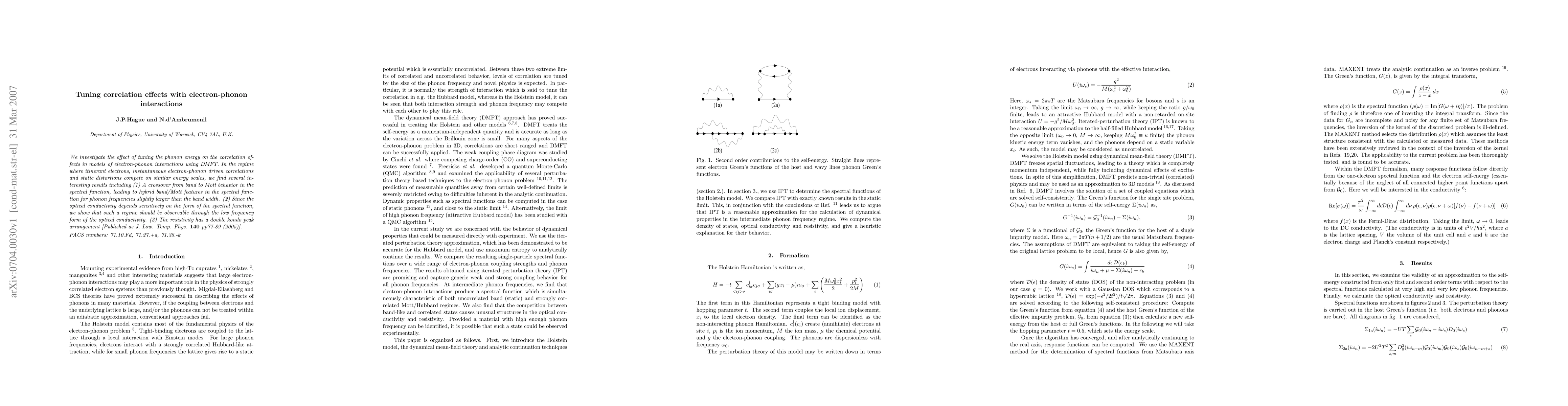 We investigate the effect of tuning the phonon energy on the correlation effects in models of electron-phonon interactions using DMFT. In the regime where itinerant electrons, instantaneous electron-phonon driven correlations and static distortions compete on similar energy scales, we find several interesting results including (1) A crossover from band to Mott behavior in the spectral function, leading to hybrid band/Mott features in the spectral function for phonon frequencies slightly larger than the band width. (2) Since the optical conductivity depends sensitively on the form of the spectral function, we show that such a regime should be observable through the low frequency form of the optical conductivity. (3) The resistivity has a double kondo peak arrangement
