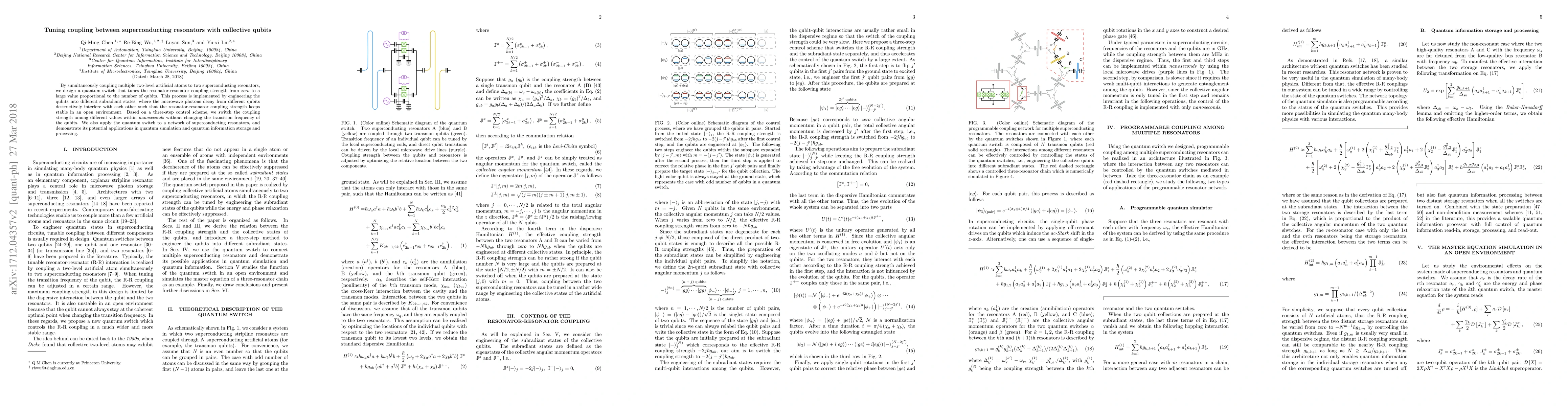 This paper presents a quantum switch that tunes the coupling between superconducting resonators by coupling multiple qubits to them, achieving variable coupling strength based on the number of qubits in subradiant states. The switch operates within nanoseconds without altering qubit transition frequencies and shows potential for quantum simulation and information processing.