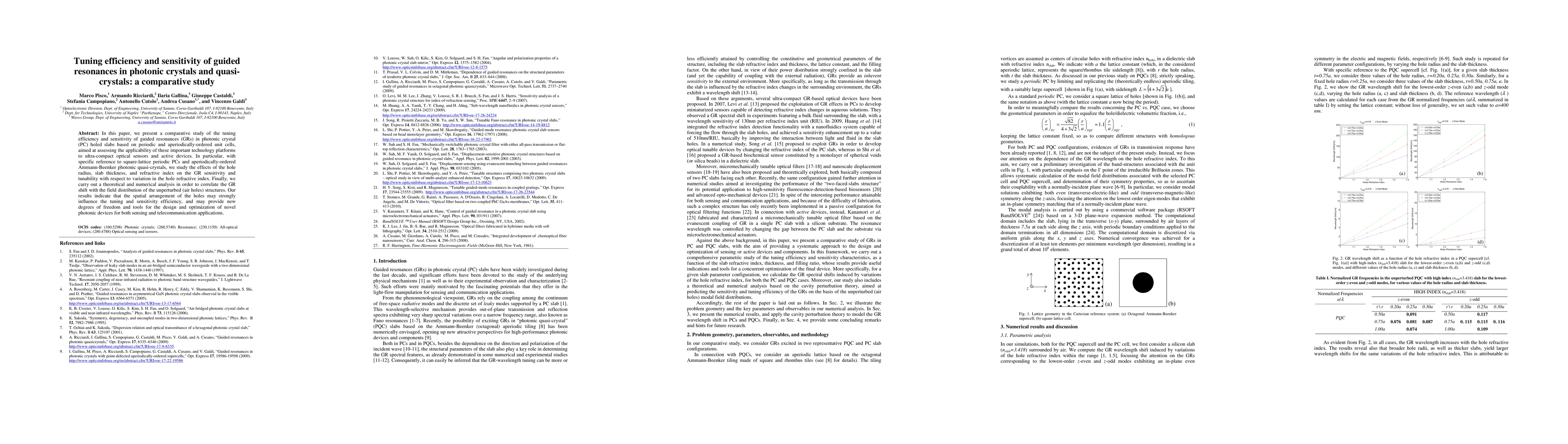This study compares guided resonances in photonic crystals and quasi-crystals to assess their applicability for ultra-compact optical sensors and active devices. It finds that the spatial arrangement of holes can significantly influence tuning and sensitivity efficiency, offering new design tools.
