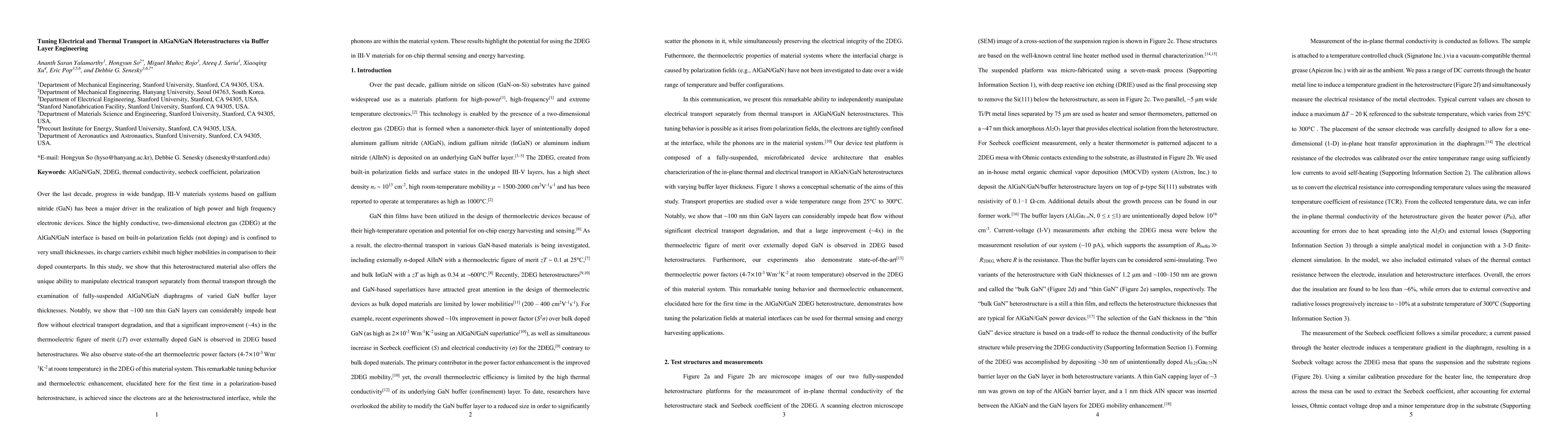 This research demonstrates that manipulating the GaN buffer layer thickness in AlGaN/GaN heterostructures can significantly improve electrical transport without degrading thermal transport, achieving a ~$4$x improvement in the thermoelectric figure of merit compared to externally doped GaN. This unique separation of electrical and thermal transport properties in polarization-based heterostructures holds promise for on-chip thermal sensing and energy harvesting applications.