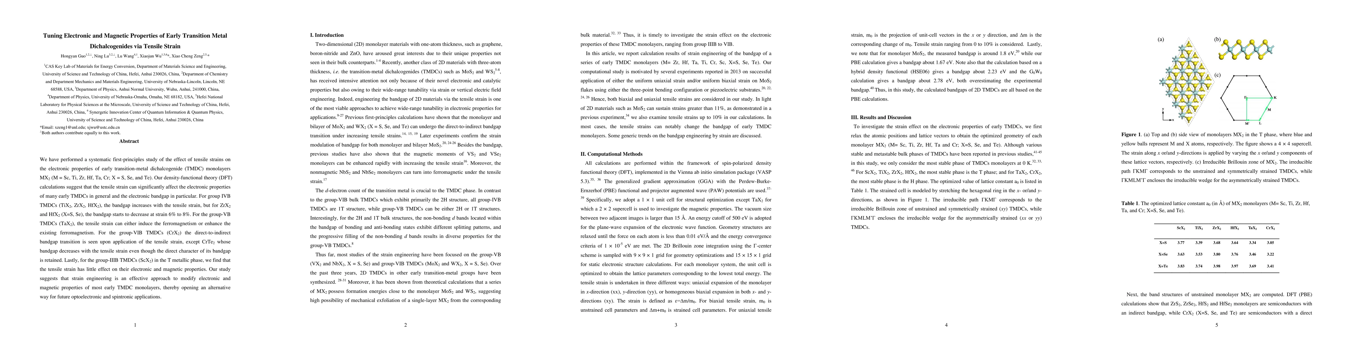 This study uses first-principles density-functional theory to investigate how tensile strain affects the electronic and magnetic properties of early transition metal dichalcogenide monolayers. The results show that tensile strain can significantly modify bandgaps and induce or enhance ferromagnetism, suggesting strain engineering as a viable method for tailoring optoelectronic and spintronic applications.
