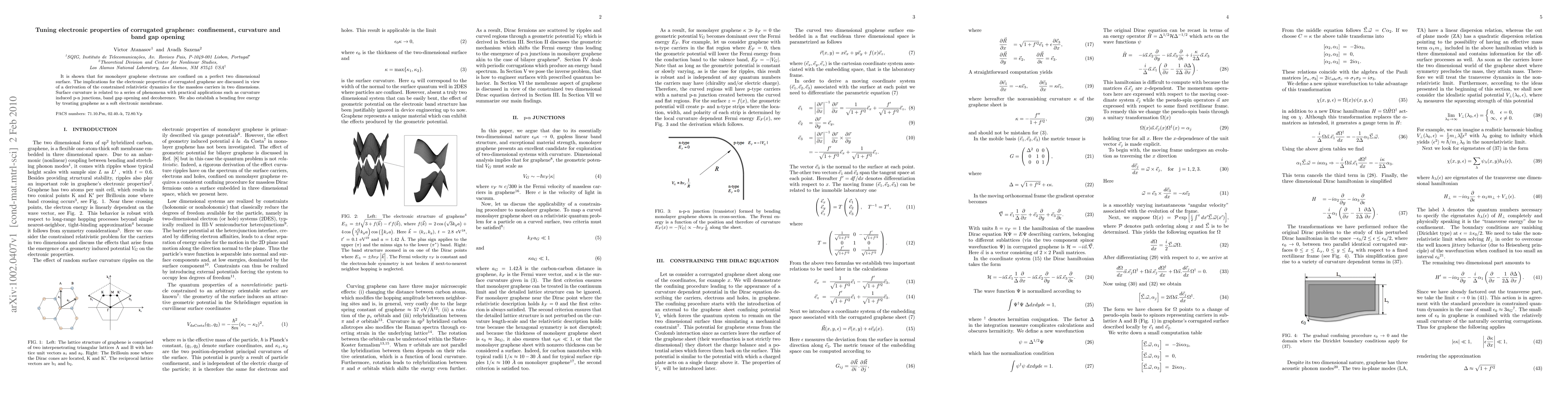 This paper investigates how curvature and confinement in corrugated graphene affect its electronic properties, demonstrating that surface curvature can induce p-n junctions, open a band gap, and introduce decoherence, while also deriving a bending free energy model for graphene as a soft electronic membrane.