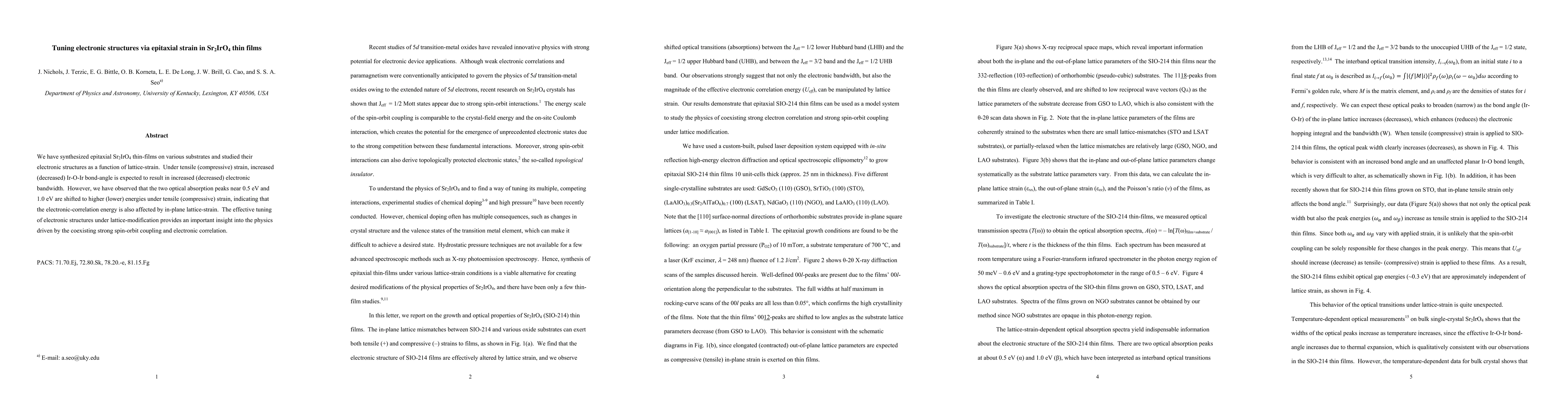 Sr2IrO4 thin-films synthesized on different substrates reveal shifts in optical absorption peaks under lattice strains, indicating that electronic correlation energy is tuned by in-plane strain, highlighting the interplay between spin-orbit coupling and electronic correlation.