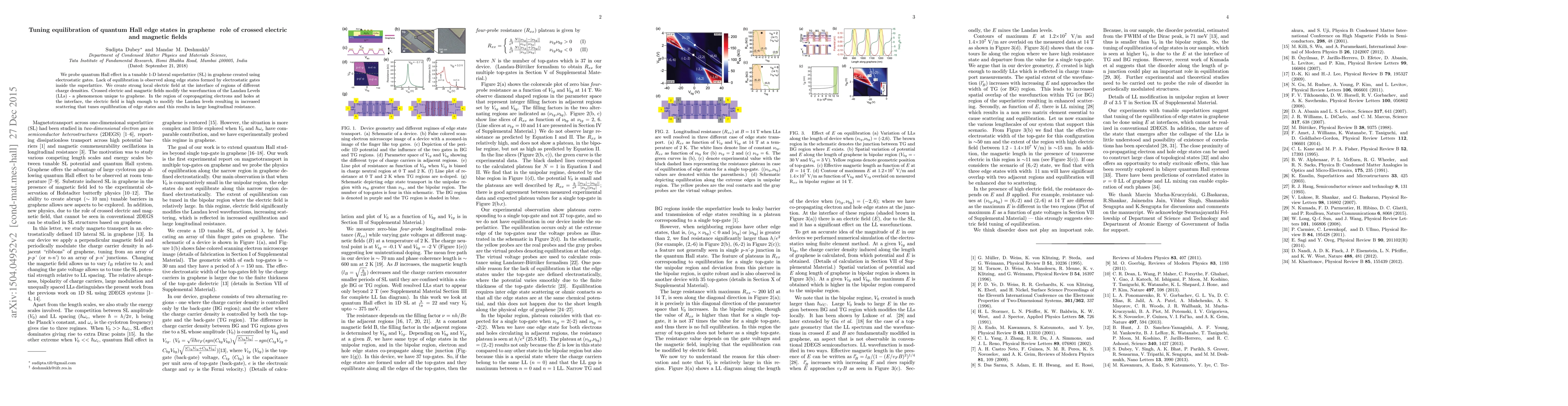 This study examines the quantum Hall effect in graphene with a tunable 1-D superlattice, revealing lack of equilibration in edge states. Crossed electric and magnetic fields, unique to graphene, modify Landau level wavefunctions, enhancing scattering at the interface of regions with different charge densities, thus tuning edge state equilibration and resulting in significant longitudinal resistance.