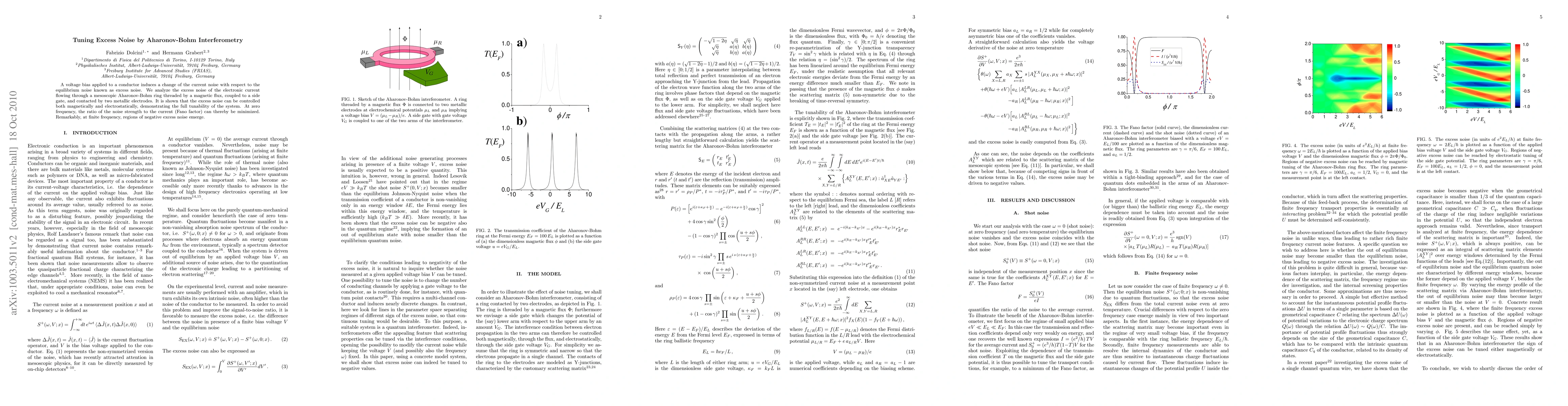 A voltage bias applied to a conductor induces a change of the current noise with respect to the equilibrium noise known as excess noise. We analyze the excess noise of the electronic current flowing through a mesoscopic Aharonov-Bohm ring threaded by a magnetic flux, coupled to a side gate, and contacted by two metallic electrodes. It is shown that the excess noise can be controlled both magnetically and electrostatically, demonstrating the full tunability of the system. At zero frequency, the ratio of the noise strength to the current (Fano factor) can thereby be minimized. Remarkably, at finite frequency, regions of negative excess noise emerge.