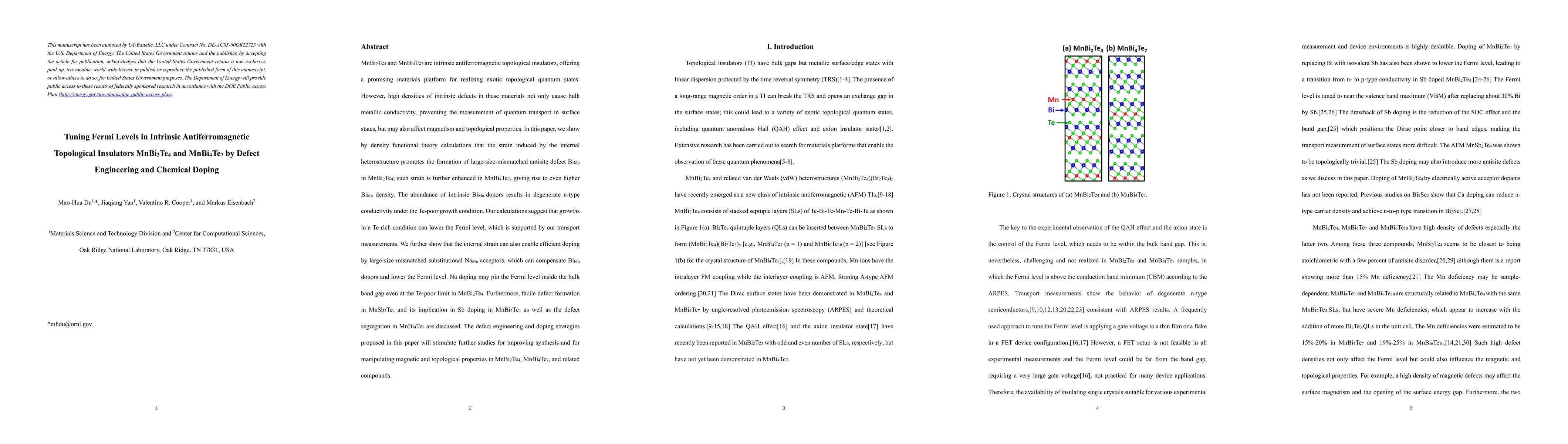 This paper investigates defect engineering and chemical doping strategies to tune Fermi levels in intrinsic antiferromagnetic topological insulators MnBi2Te4 and MnBi4Te7, revealing that Te-rich growth conditions and NaMn doping can effectively lower the Fermi level and mitigate bulk metallic conductivity.