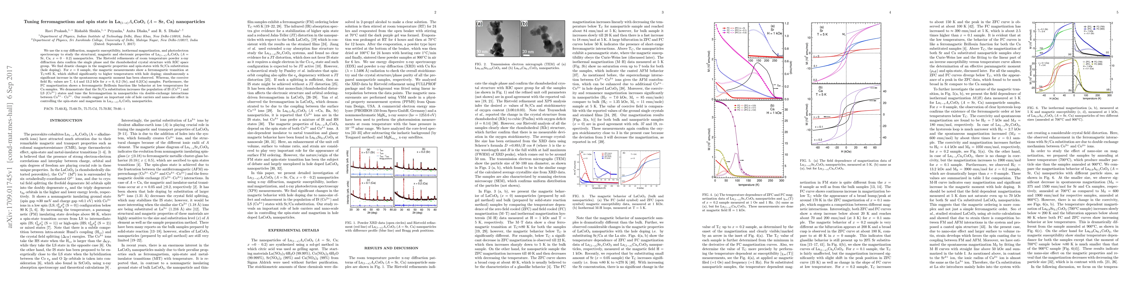 Researchers studied nanoparticles of La$(1-x)$A$x$CoO$_3$, finding that substituting Sr for Ca increases ferromagnetism through double-exchange interactions between Co$^{3+}$ and Co$^{4+}$ states, with implications for spin-state and magnetism control in nanoparticles.