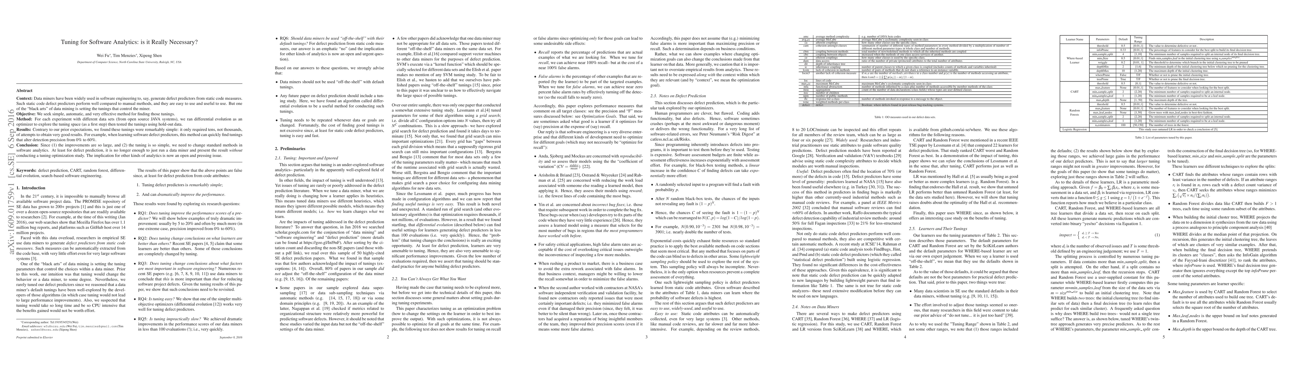 Researchers found that tuning parameters for software analytics can often be achieved with just tens of attempts, leading to significant improvements in performance, and suggest a shift away from manual optimization methods.