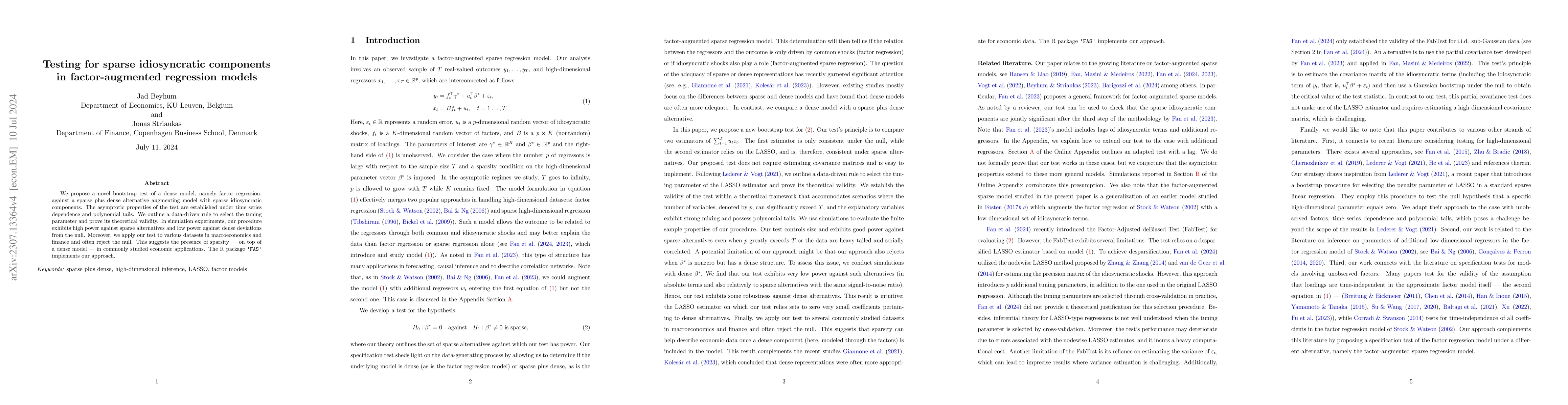 This study introduces a bootstrap test of the validity of factor regression within a high-dimensional factor-augmented sparse regression model that integrates factor and sparse regression techniques. The test provides a means to assess the suitability of the classical dense factor regression model compared to a sparse plus dense alternative augmenting factor regression with idiosyncratic shocks. Our proposed test does not require tuning parameters, eliminates the need to estimate covariance matrices, and offers simplicity in implementation. The validity of the test is theoretically established under time-series dependence. Through simulation experiments, we demonstrate the favorable finite sample performance of our procedure. Moreover, using the FRED-MD dataset, we apply the test and reject the adequacy of the classical factor regression model when the dependent variable is inflation but not when it is industrial production. These findings offer insights into selecting appropriate models for high-dimensional datasets.