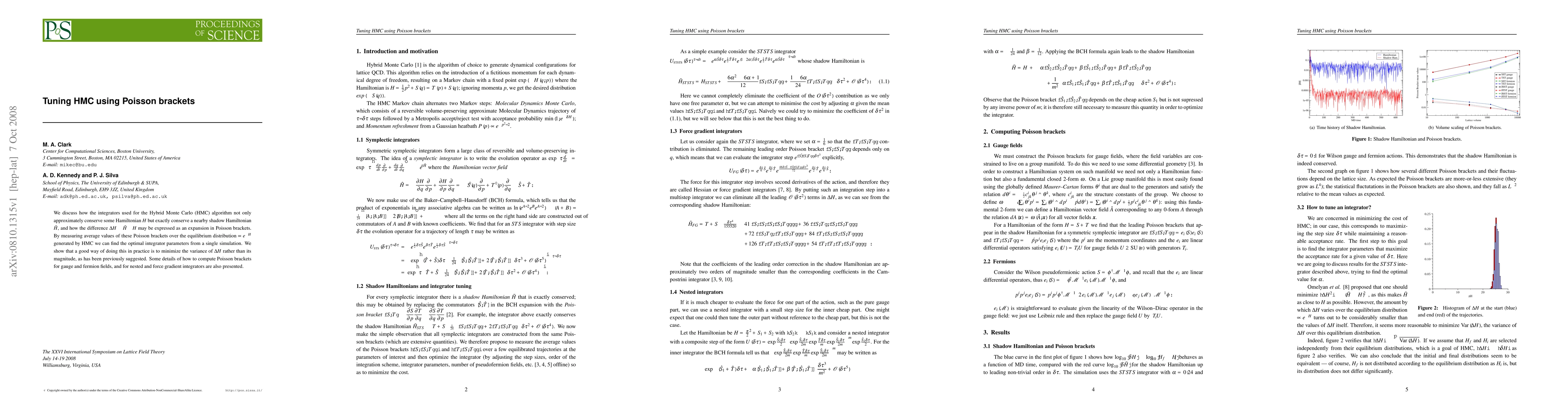 This paper explores optimizing Hybrid Monte Carlo (HMC) integrators by measuring average Poisson brackets to find the optimal parameters. It suggests minimizing the variance of the difference between the shadow Hamiltonian and the true Hamiltonian for better tuning, rather than minimizing the difference itself.