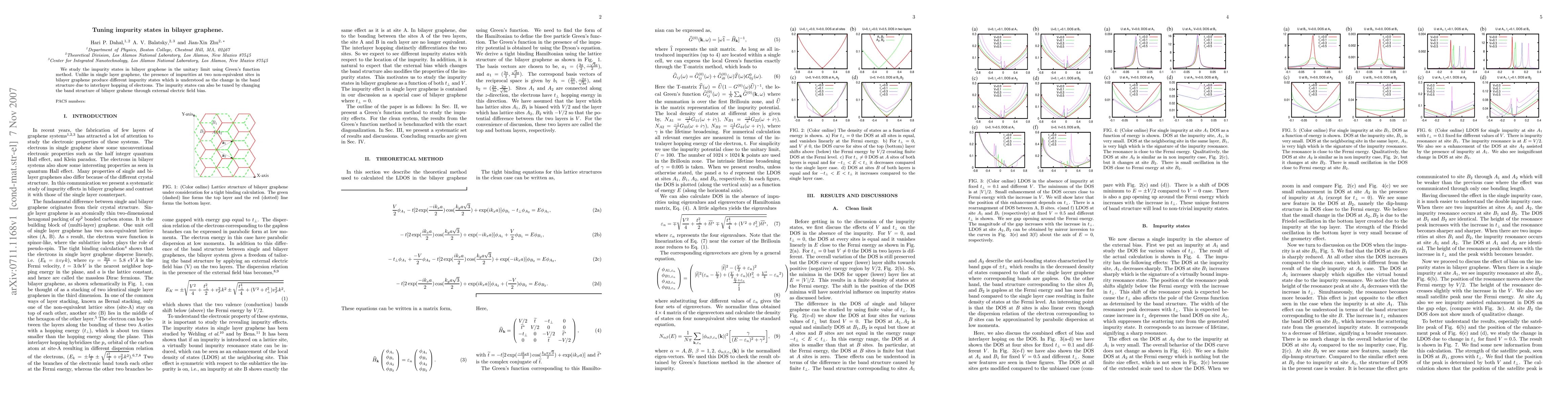 Summary: This study investigates impurity states in bilayer graphene under a unitary limit, revealing distinct impurity states resulting from different non-equivalent sites and tunable through external electric field bias due to interlayer electron hopping.