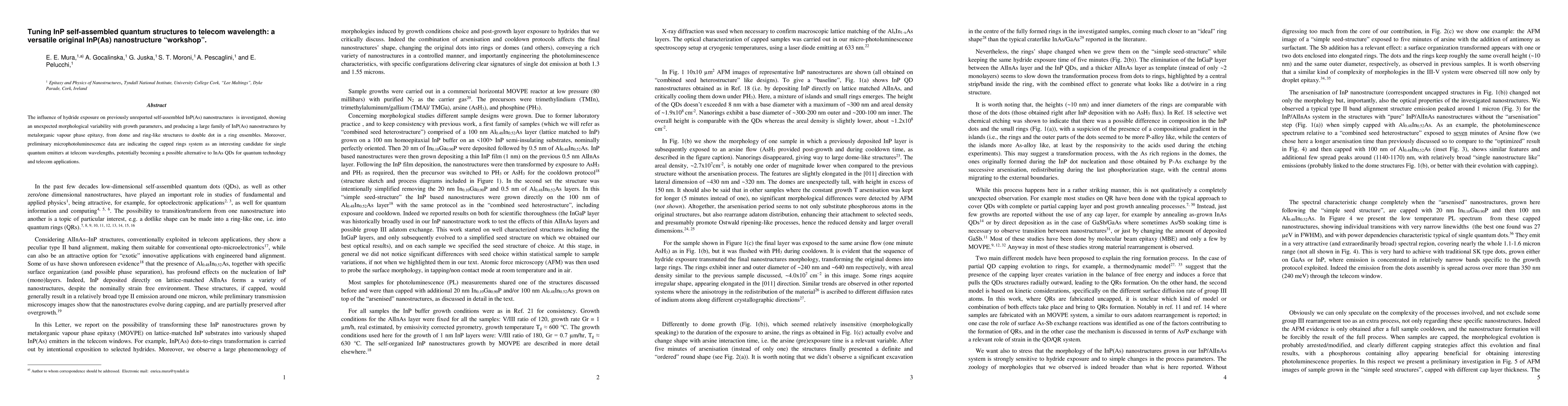 This study explores the effects of hydride exposure on self-assembled InP(As) nanostructures, resulting in diverse morphologies and a variety of nanostructures via metalorganic vapour phase epitaxy. Preliminary microphotoluminescence data suggest capped ring systems as promising single quantum emitters at telecom wavelengths, potentially rivaling InAs quantum dots for quantum technology and telecom applications.