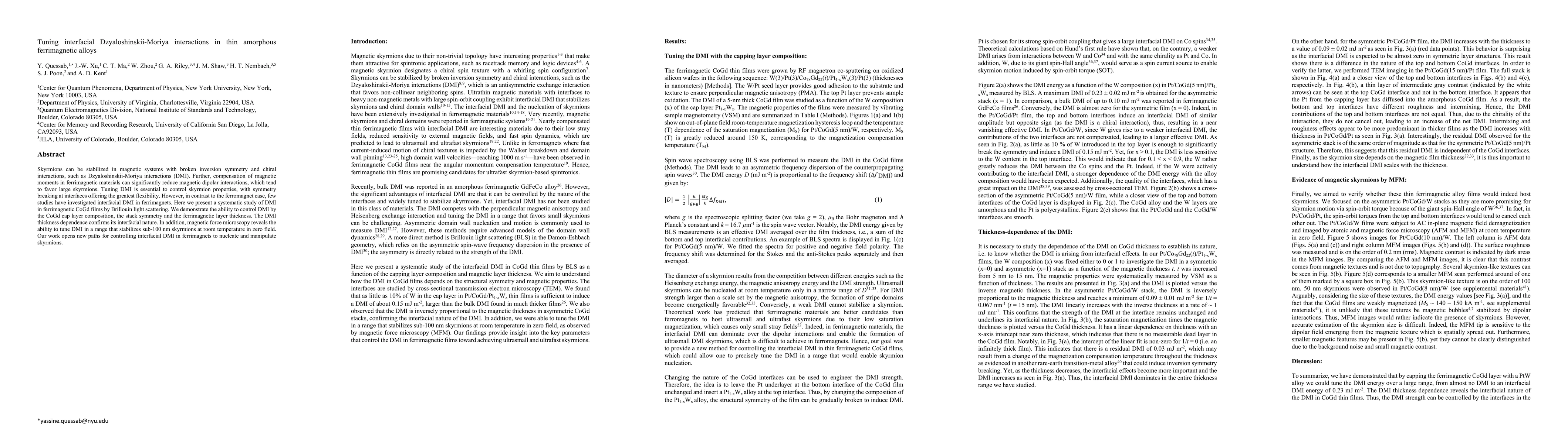 This paper investigates the tuning of Dzyaloshinskii-Moriya interactions (DMI) in thin amorphous ferrimagnetic CoGd films, demonstrating control via layer composition and stack symmetry. The study reveals the ability to stabilize sub-100 nm skyrmions at room temperature, highlighting the potential for manipulating skyrmions in ferrimagnetic materials.