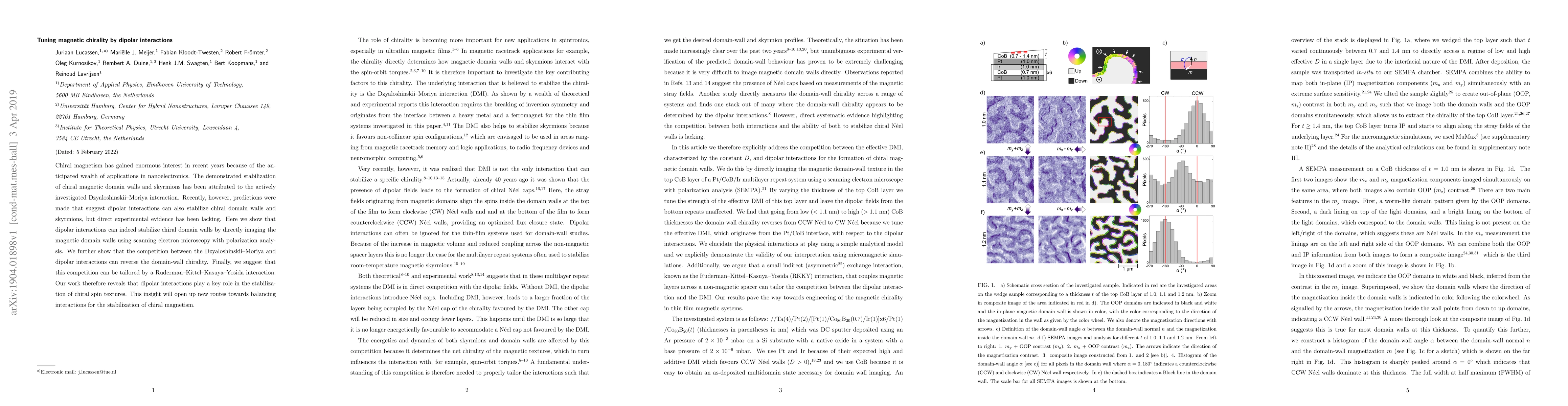 This paper demonstrates that dipolar interactions can stabilize chiral magnetic domain walls and skyrmions, providing direct imaging evidence. It also reveals how the competition between Dzyaloshinskii-Moriya and dipolar interactions can reverse domain-wall chirality, suggesting new pathways for controlling chiral magnetism through interaction tuning.