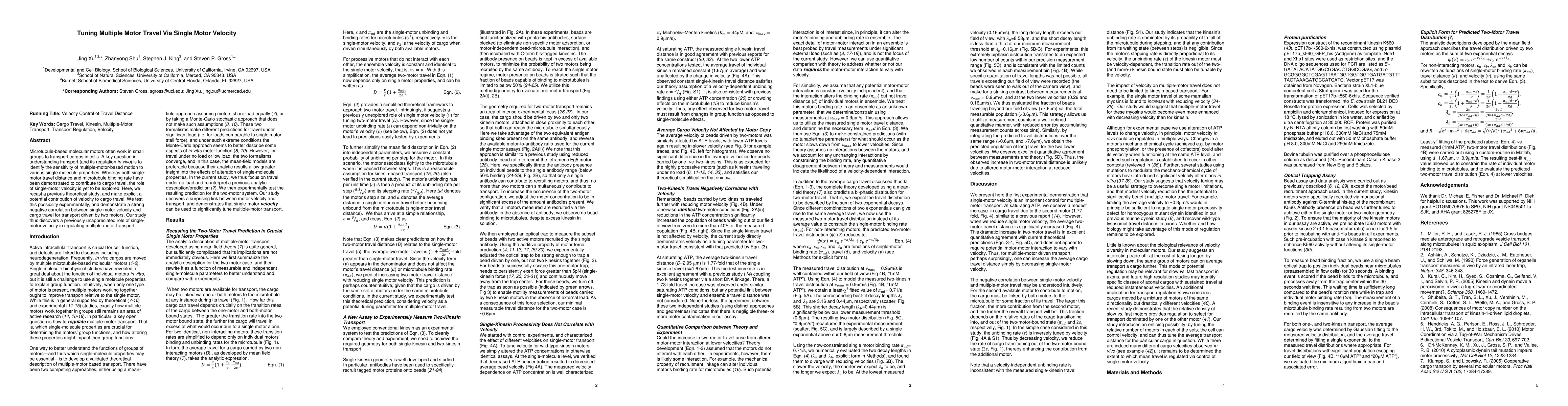 This paper investigates how single-motor velocity influences the collective transport of cargos by multiple microtubule-based motors. Experimental results reveal a strong negative correlation between single-motor velocity and cargo travel when two motors are involved, highlighting a previously unrecognized regulatory role of single-motor velocity in multiple-motor transport.