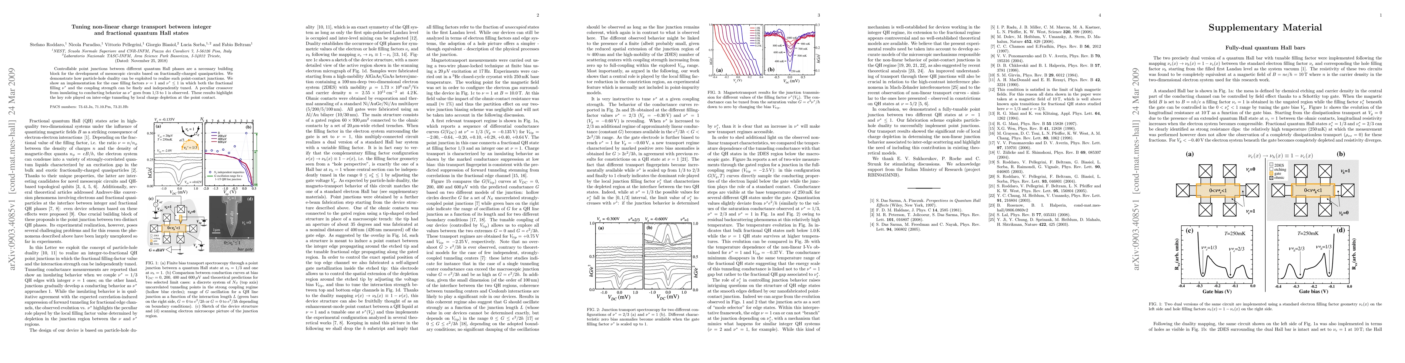 Controllable point junctions between different quantum Hall phases are a necessary building block for the development of mesoscopic circuits based on fractionally-charged quasiparticles. We demonstrate how particle-hole duality can be exploited to realize such point-contact junctions. We show an implementation for the case filling factors $\nu=1$ and $\nu^*\le1$ in which both the fractional filling $\nu^*$ and the coupling strength can be finely and independently tuned. A peculiar crossover from insulating to conducting behavior as $\nu^*$ goes from 1/3 to 1 is observed. These results highlight the key role played on inter-edge tunneling by local charge depletion at the point contact.