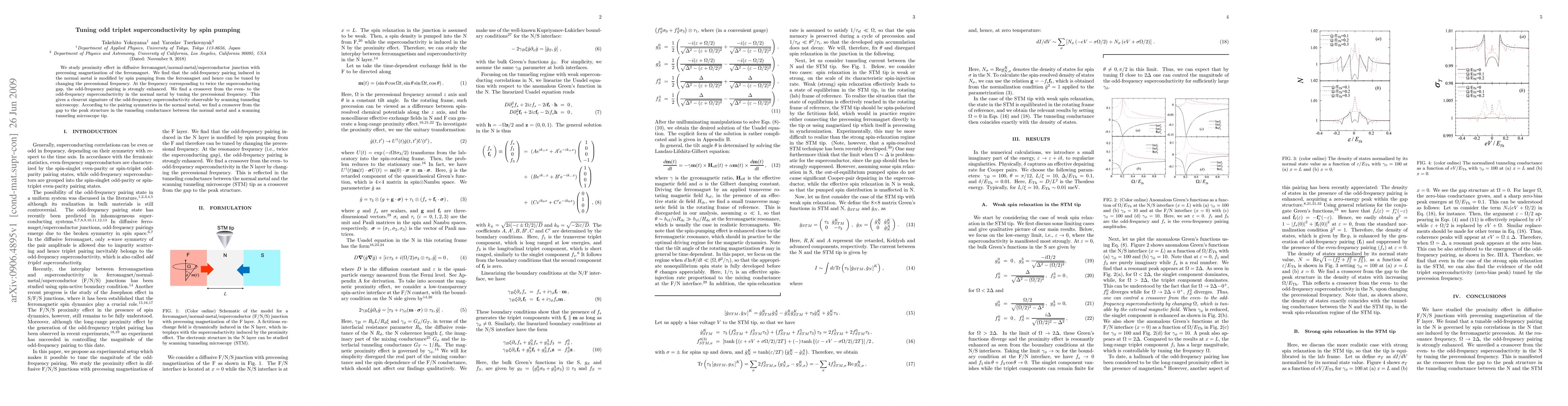 This paper investigates the proximity effect in ferromagnet/normal-metal/superconductor junctions, demonstrating that spin pumping from the ferromagnet tunes odd-triplet superconductivity in the normal metal. The study reveals a frequency-dependent enhancement of odd-frequency pairing, with a notable crossover from even- to odd-frequency superconductivity observable via scanning tunneling microscopy.