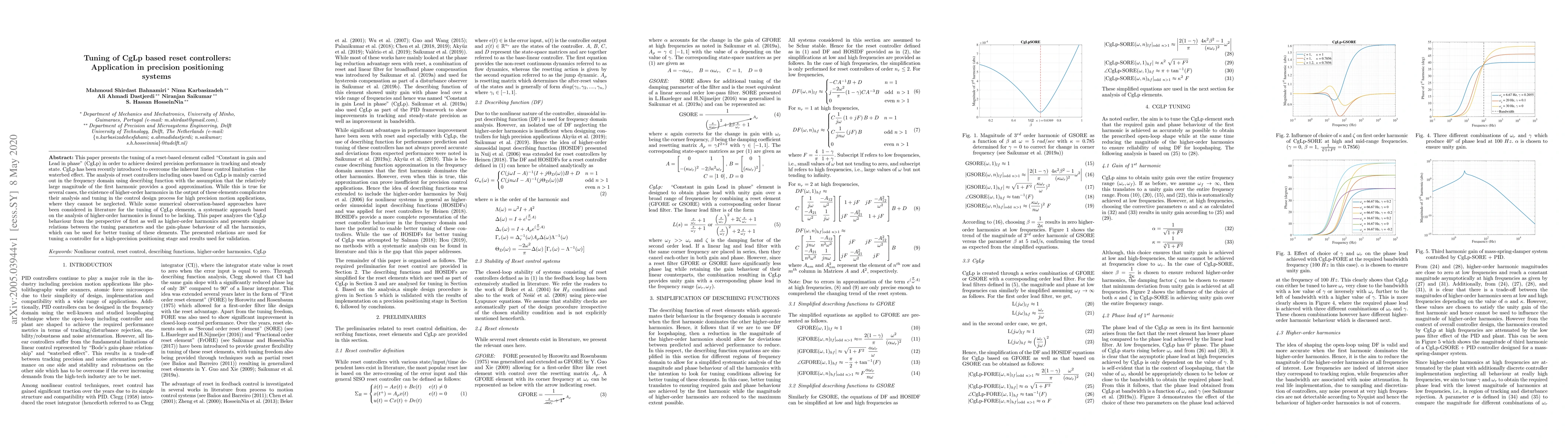This paper introduces a systematic approach to tuning the "Constant in gain and Lead in phase" (CgLp) reset controller, analyzing both first and higher-order harmonics to achieve precise performance in positioning systems, and validates the method through practical application on a high-precision positioning stage.