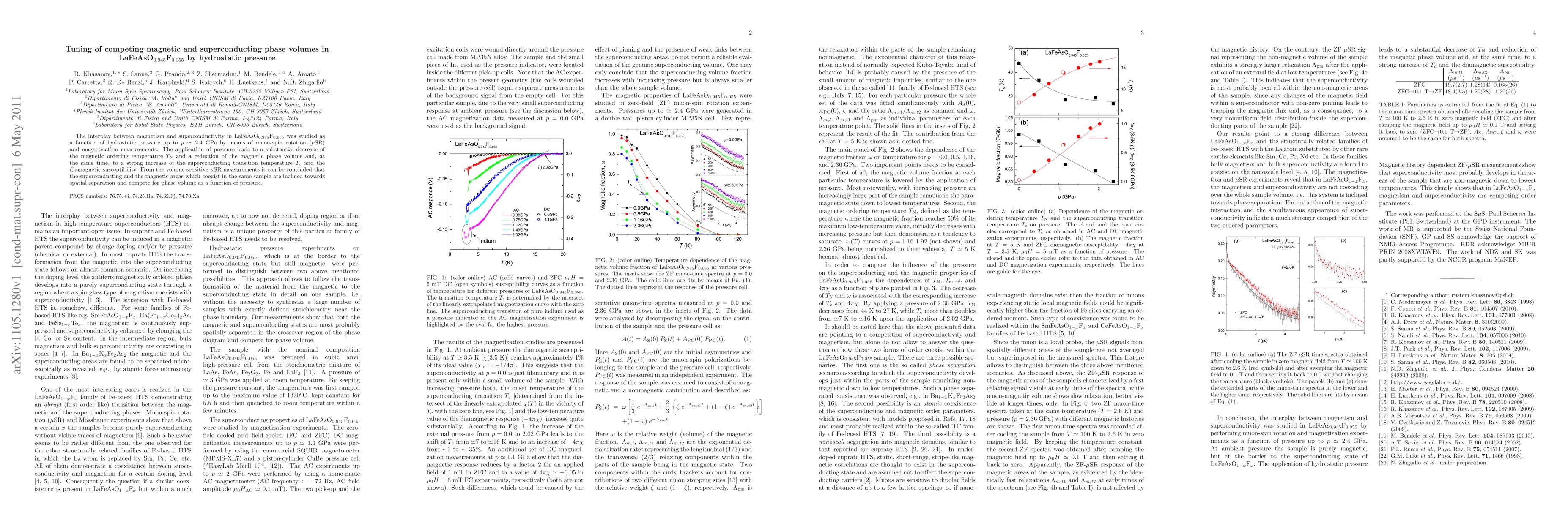 Researchers studied how pressure affects magnetism and superconductivity in a material, finding that increasing pressure reduces magnetic ordering and increases superconducting transition temperature, suggesting competing phases with separate volumes.