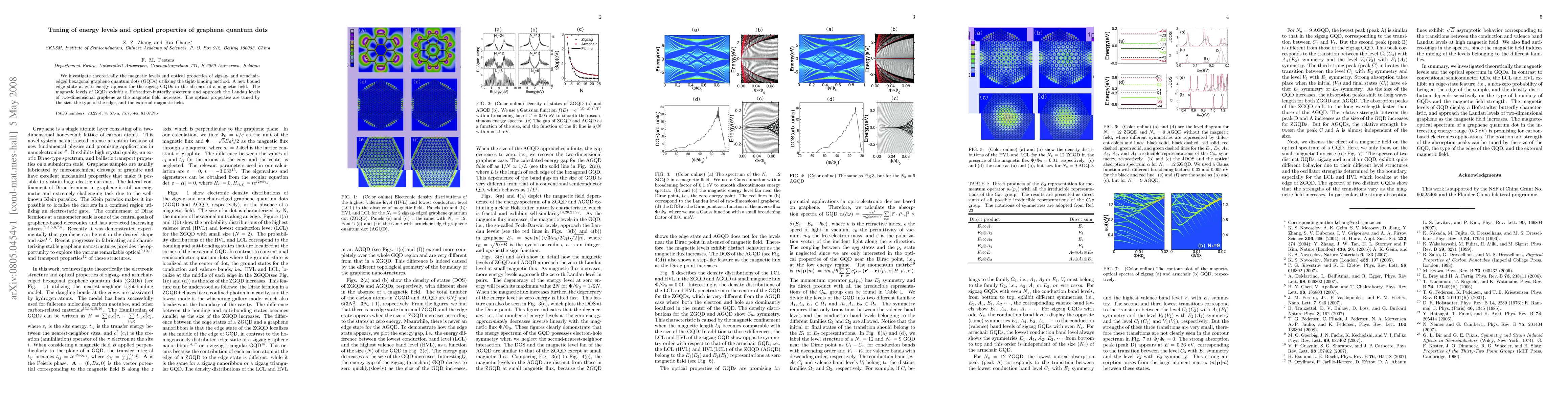 This research theoretically examines the magnetic levels and optical properties of zigzag- and armchair-edged graphene quantum dots (GQDs) using the tight-binding method, revealing a zero-energy bound edge state in zigzag GQDs and a Hofstadter-butterfly spectrum in magnetic fields, with optical properties influenced by GQD size, edge type, and magnetic field.
