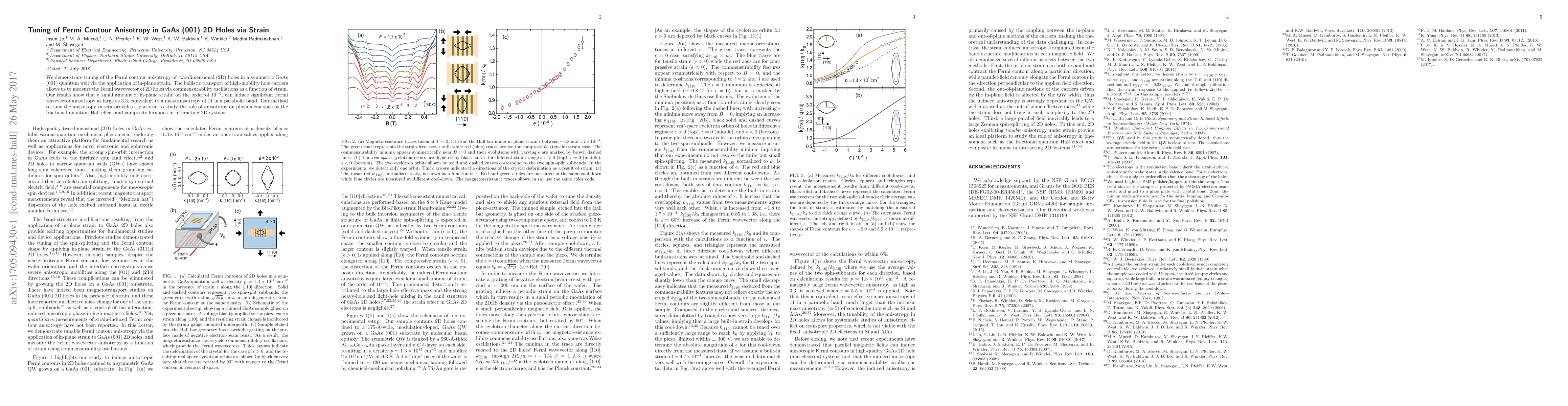 This paper demonstrates how in-plane strain can tune the Fermi contour anisotropy of two-dimensional holes in a GaAs (001) quantum well, achieving significant anisotropy with minimal strain. The study provides a method to investigate the impact of such anisotropy on quantum phenomena like the fractional quantum Hall effect.