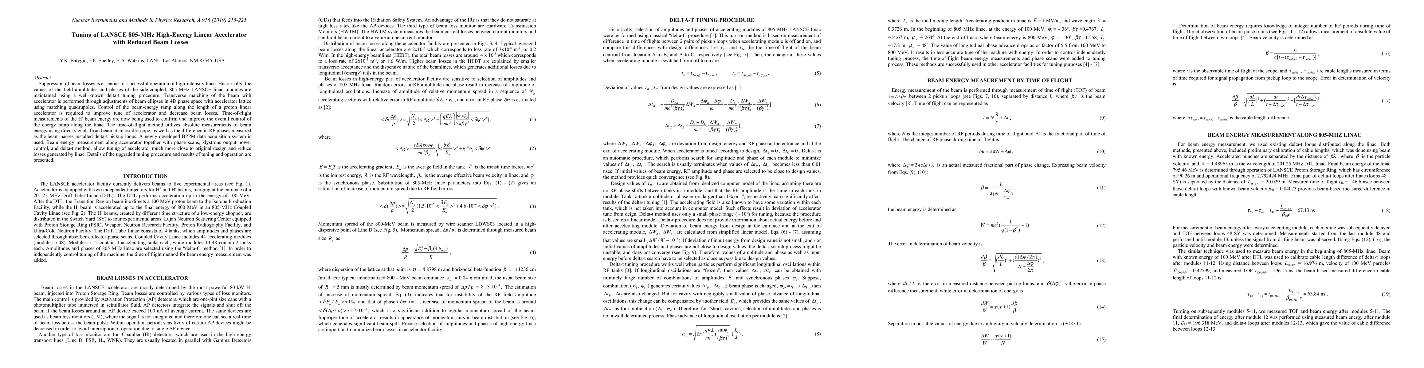 Researchers improved the tuning of the LANSCE 805-MHz high-energy linear accelerator by using a new time-of-flight method to control beam energy and reduce losses.