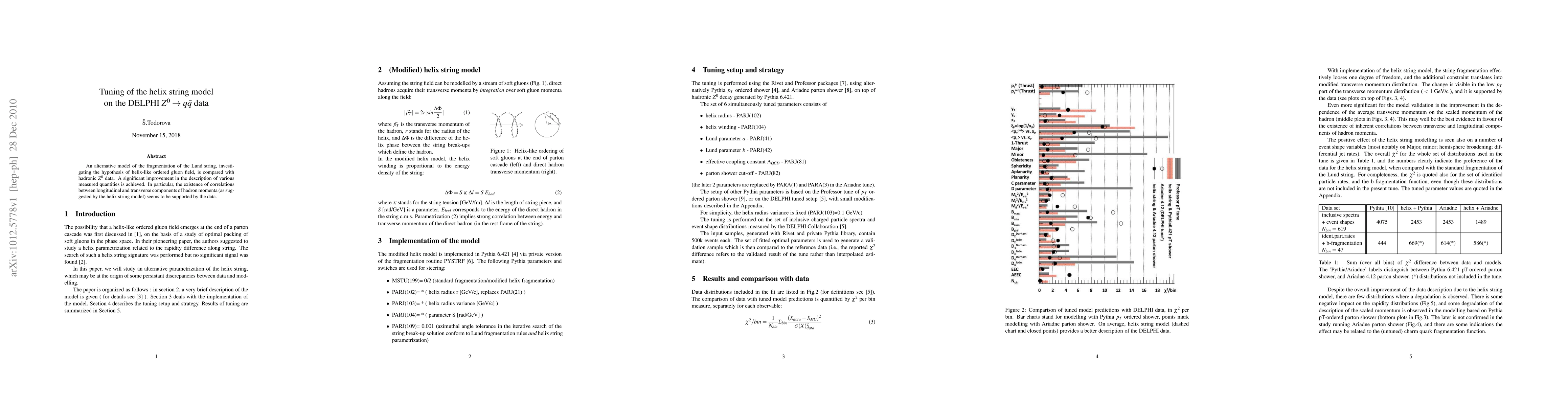 An alternative model of the fragmentation of the Lund string, investigating the hypothesis of helix-like ordered gluon field, is compared with hadronic $Z^0$ data. A significant improvement in the description of various measured quantities is achieved. In particular, the existence of correlations between longitudinal and transverse components of hadron momenta (as suggested by the helix string model) seems to be supported by the data.