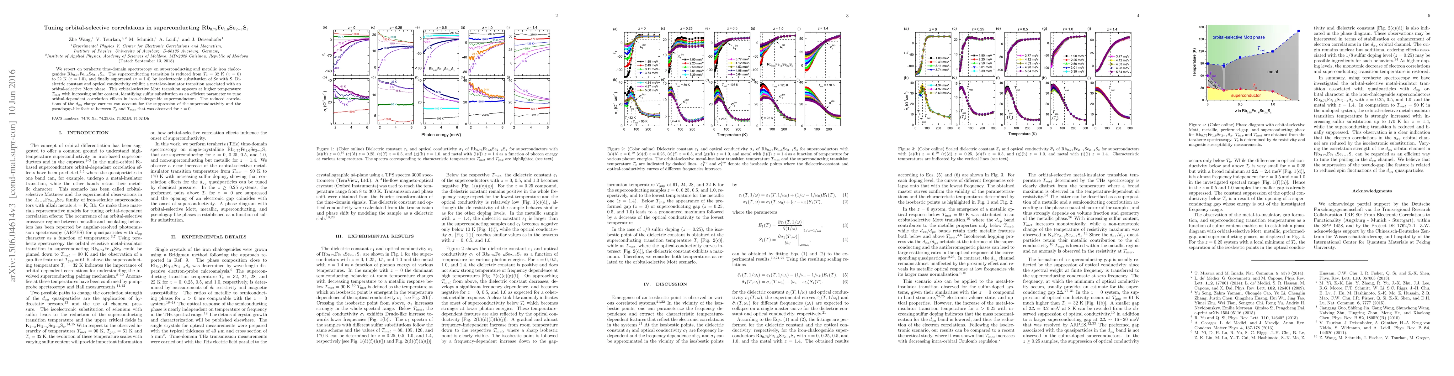 This study investigates the impact of sulfur substitution on Rb$_{0.75}$Fe$_{1.6}$Se$_{2-z}$S$_z$ iron-chalcogenide superconductors using terahertz spectroscopy, revealing a reduction in superconducting transition temperature and the emergence of an orbital-selective Mott phase. The findings suggest that sulfur substitution efficiently tunes orbital-dependent correlation effects, leading to the suppression of superconductivity.