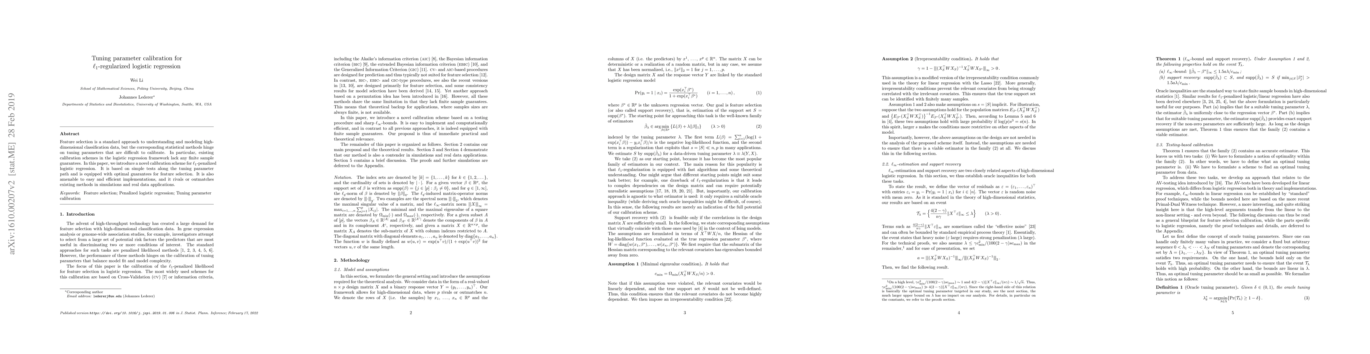 This paper proposes a novel calibration scheme for $\ell_1$-regularized logistic regression that provides optimal guarantees for feature selection, overcoming the lack of finite sample guarantees in existing methods. The scheme is simple, efficient, and performs competitively in simulations and real-world applications.