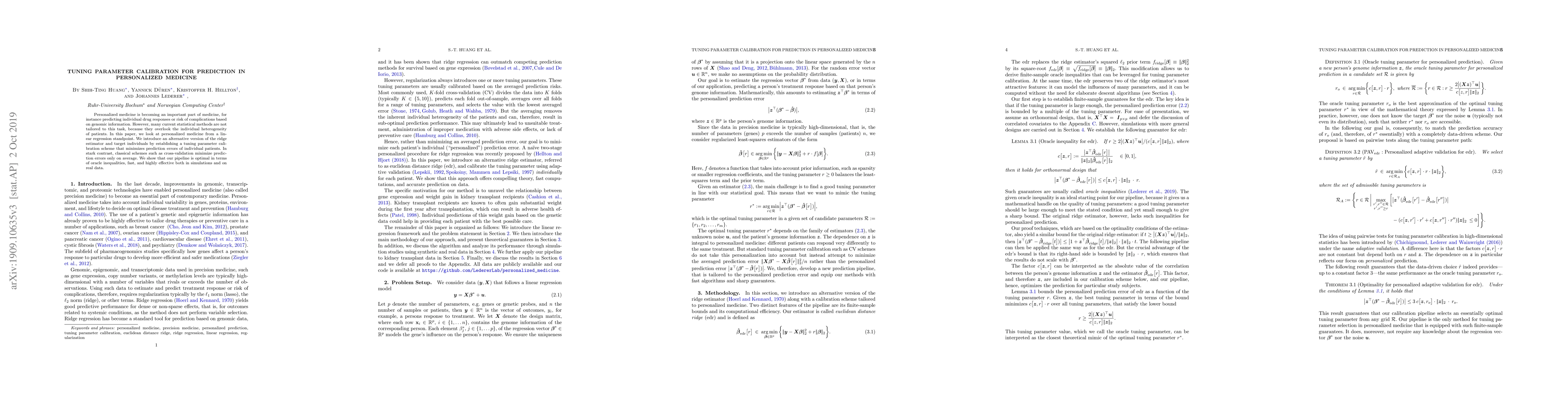 Personalized medicine has become an important part of medicine, for instance predicting individual drug responses based on genomic information. However, many current statistical methods are not tailored to this task, because they overlook the individual heterogeneity of patients. In this paper, we look at personalized medicine from a linear regression standpoint. We introduce an alternative version of the ridge estimator and target individuals by establishing a tuning parameter calibration scheme that minimizes prediction errors of individual patients. In stark contrast, classical schemes such as cross-validation minimize prediction errors only on average. We show that our pipeline is optimal in terms of oracle inequalities, fast, and highly effective both in simulations and on real data.