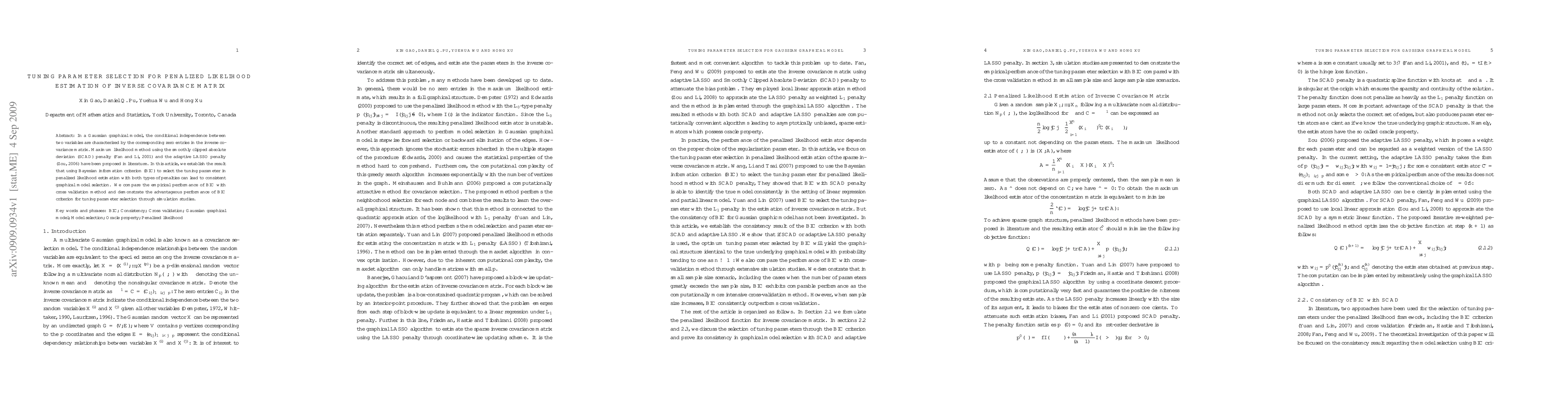 This paper investigates tuning parameter selection for penalized likelihood estimation in Gaussian graphical models using SCAD and adaptive LASSO penalties. It demonstrates that the Bayesian information criterion (BIC) outperforms cross-validation in selecting tuning parameters, leading to consistent graphical model selection, as shown through simulation studies.