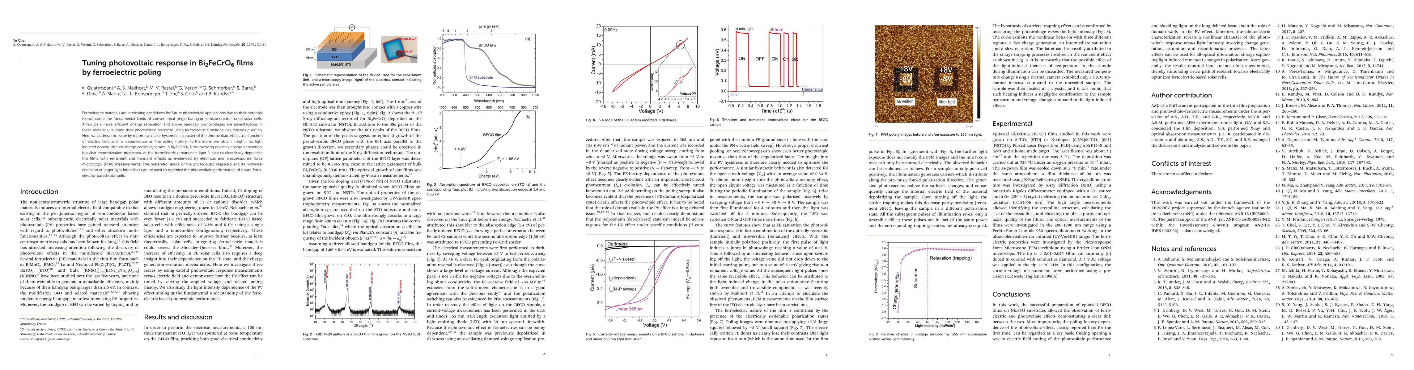 This research demonstrates a hysteretic photovoltaic effect in Bi2FeCrO6 films, linked to ferroelectric poling. Light-induced charge carrier dynamics, including generation and recombination, are explored, revealing that light can depolarize the films at ferroelectric remanence. These findings suggest ways to optimize photovoltaic performance in ferroelectric-based solar cells.