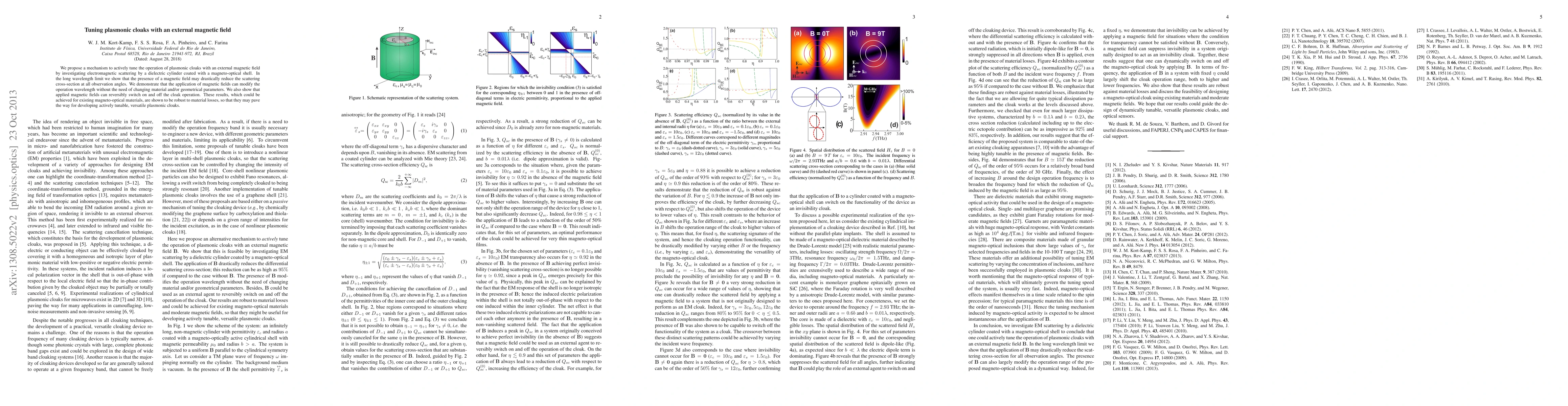 We propose a mechanism to actively tune the operation of plasmonic cloaks with an external magnetic field by investigating electromagnetic scattering by a dielectric cylinder coated with a magneto-optical shell. In the long wavelength limit we show that the presence of an external magnetic field may drastically reduce the scattering cross-section at all observation angles. We demonstrate that the application of external magnetic fields can modify the operation wavelength without the need of changing material and/or geometrical parameters. We also show that applied magnetic fields can reversibly switch on and off the cloak operation. These results, which could be achieved for existing magneto-optical materials, are shown to be robust to material losses, so that they may pave the way for developing actively tunable, versatile plasmonic cloaks.
