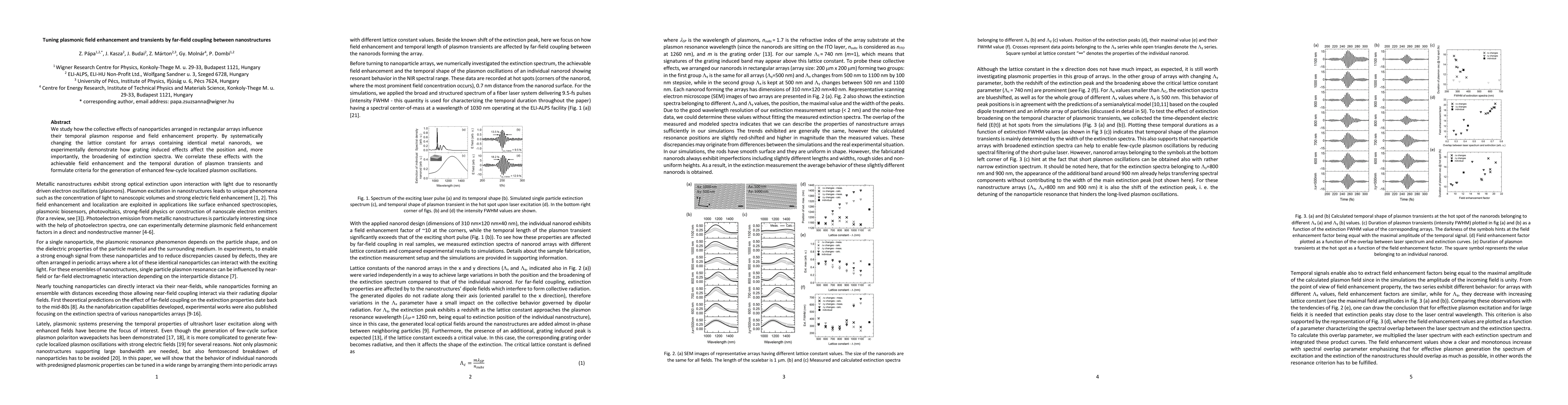 Researchers studied how nanoparticles arranged in arrays affect their plasmon response, demonstrating how lattice constant changes impact extinction spectra, field enhancement, and transient duration.
