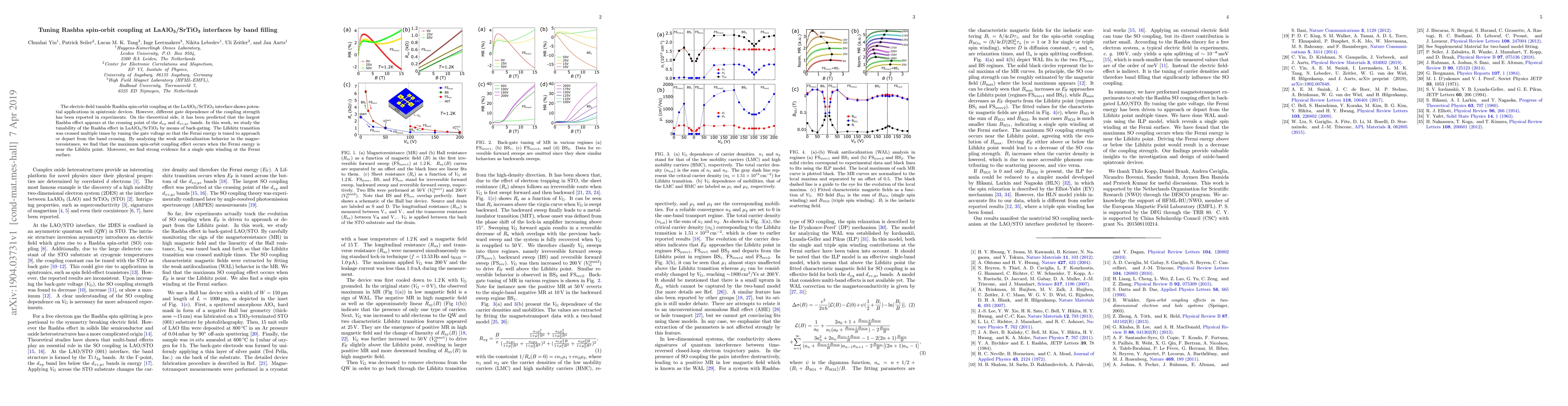 This paper investigates the tunability of Rashba spin-orbit coupling at LaAlO3/SrTiO3 interfaces via band filling adjustments using back-gating. The study finds that maximum spin-orbit coupling occurs near the Lifshitz transition point, providing insights into optimizing spintronic devices.