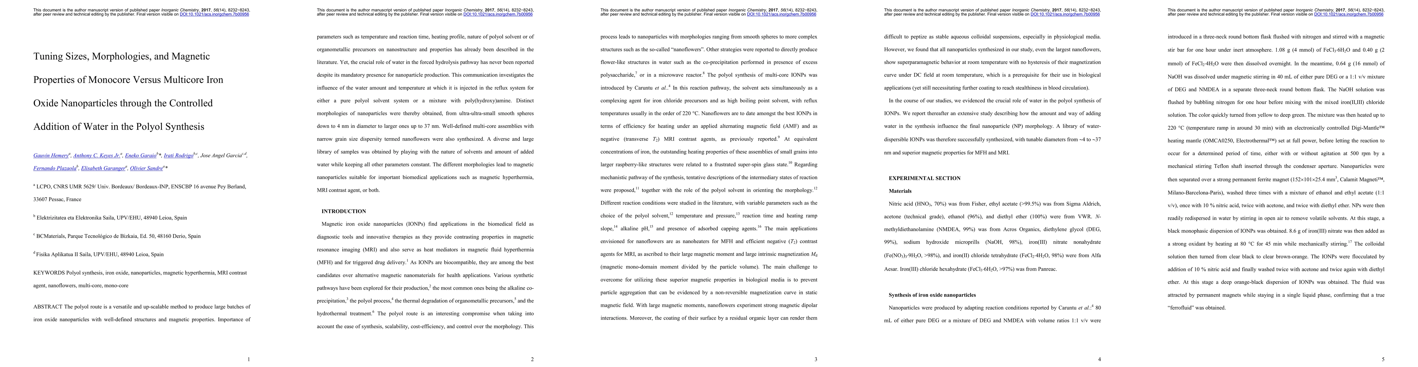 The polyol route is a versatile and up-scalable method to produce large batches of iron oxide nanoparticles with well-defined structure and magnetic properties. Controlling parameters such as temperature and duration of reaction, heating profile, nature of polyol solvent or of organometallic precursors were reported in previous studies of literature, but none of them described yet the crucial role of water in the forced hydrolysis pathway, whose presence is mandatory for nanoparticle production. This communication investigates the influence of the water amount and temperature at which it is injected in the reflux system for either pure polyol or mixture with a poly(hydroxy) amine. Distinct morphologies of nanoparticles were thereby obtained, from ultra-ultra-small smooth spheres down to 4 nm in diameter to large ones up to 37 nm in diameter. Nanoflowers were also synthesized, which are well-defined multi-core assemblies with narrow grain size dispersity. A diverse and large library of samples was obtained by playing on the nature of solvents and amount of water traces while keeping all the other parameters fixed. The varied morphologies lead to magnetic nanoparticles well-fitting to required applications among magnetic hyperthermia and MRI contrast agent, or both.
