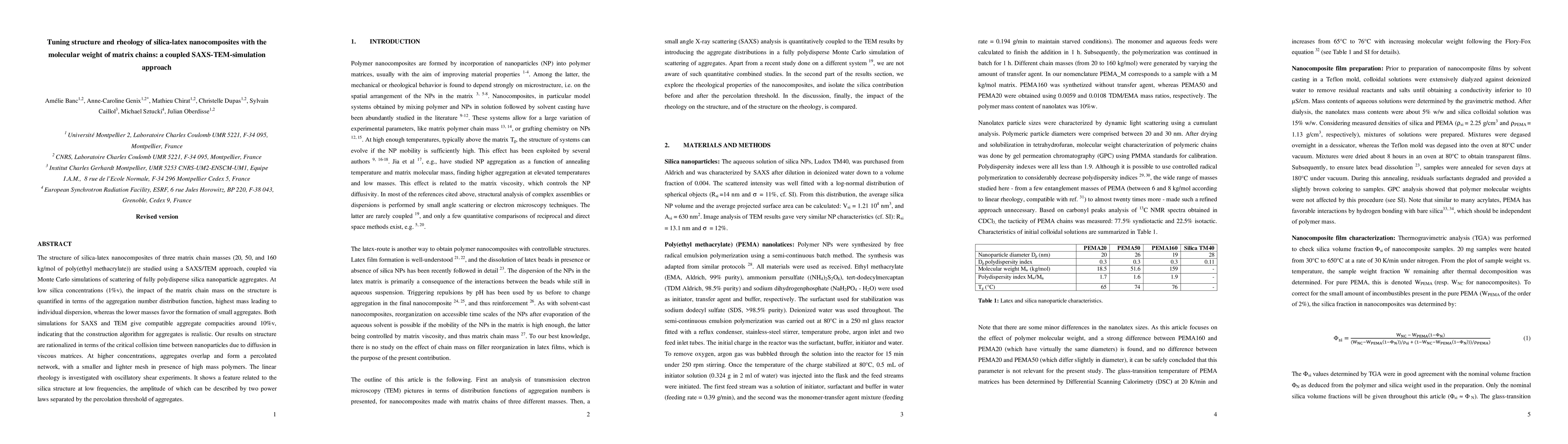 This study investigates silica-latex nanocomposites with varying matrix chain masses (20, 50, and 160 kg/mol) using SAXS, TEM, and Monte Carlo simulations. At low silica concentrations, higher matrix chain mass favors individual dispersion, while lower masses promote small aggregates. Higher concentrations lead to percolated networks with smaller meshes in high mass polymer environments. Rheological studies reveal a silica structure-related feature in oscillatory shear experiments.
