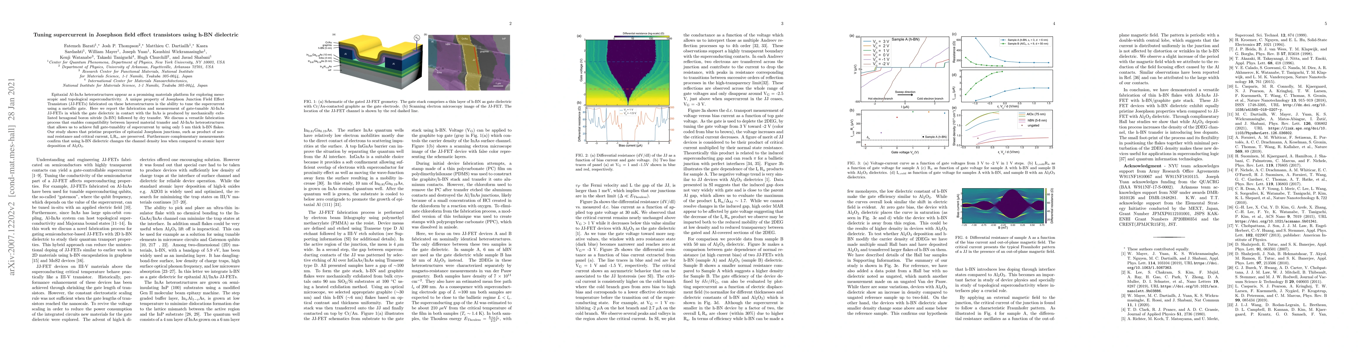 This paper reports the fabrication of gate-tunable Al-InAs Josephson Junction Field Effect Transistors (JJ-FETs) using hexagonal boron nitride (h-BN) as a dielectric, achieving full gate-tunability of supercurrent with minimal doping. The h-BN dielectric shows comparable performance but less surface doping compared to conventional AlO$_x$ dielectrics.