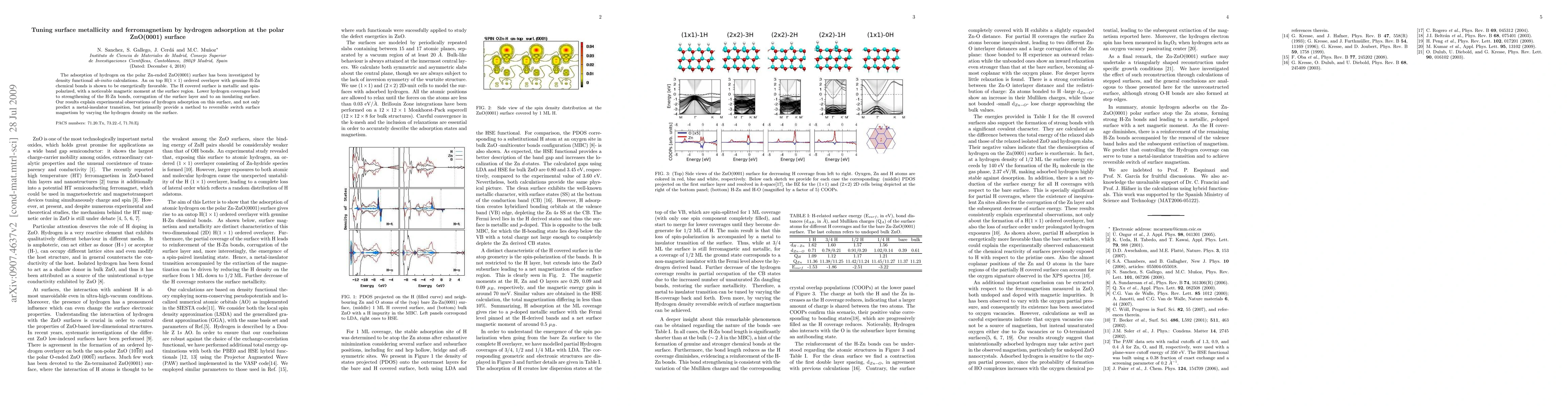 This study uses density functional theory to show that hydrogen adsorption on the ZnO(0001) surface induces surface metallicity and ferromagnetism, with higher hydrogen coverages maintaining a metallic, spin-polarized state, while lower coverages result in insulating behavior and surface corrugation.
