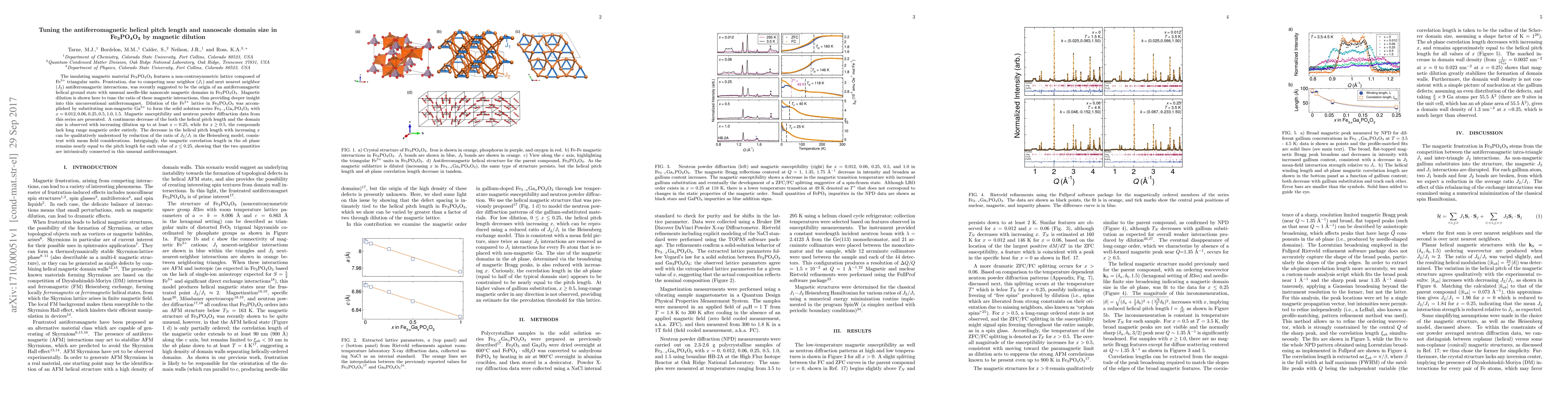 Researchers tuned the magnetic interactions in Fe$_3$PO$_4$O$_3$ by substituting Ga$^{3+}$ to study its antiferromagnetic helical pitch length and nanoscale domain size, revealing a connection between these quantities with dilution.