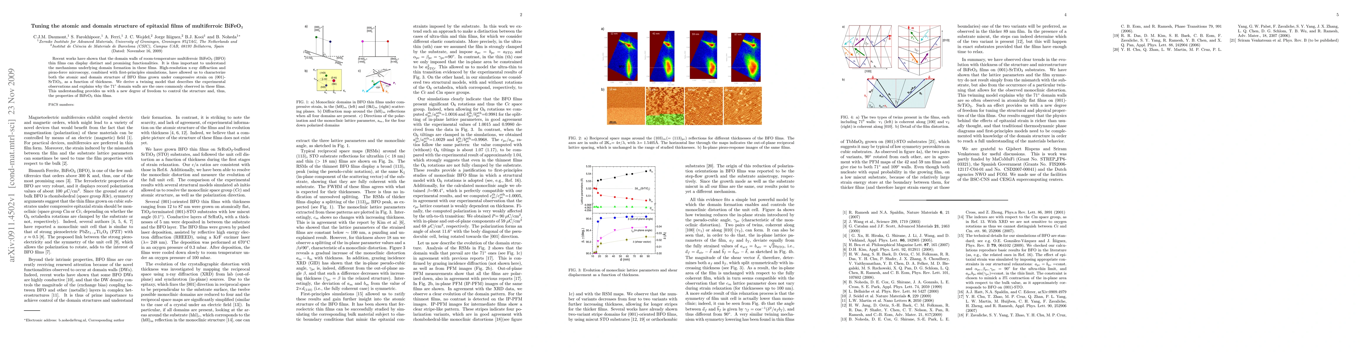 This research uses advanced techniques to analyze the atomic and domain structure of BiFeO3 thin films, finding that 71° domain walls are predominant. The study proposes a twining model explaining domain formation and offers a method to manipulate the film's structure and properties.
