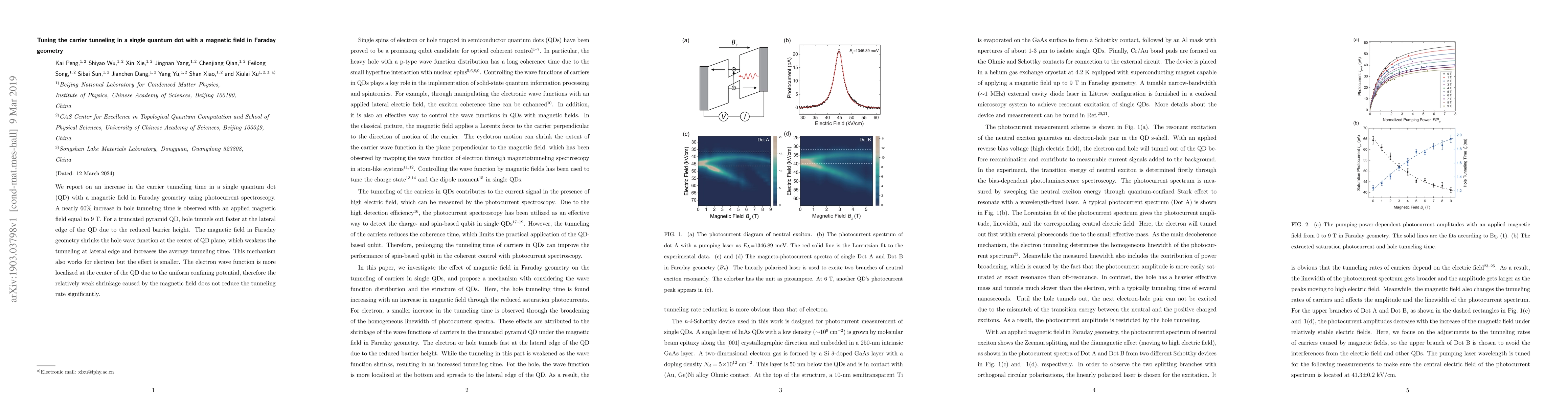 We report on an increase in the carrier tunneling time in a single quantum dot (QD) with a magnetic field in Faraday geometry using photocurrent spectroscopy. A nearly 60\% increase in hole tunneling time is observed with an applied magnetic field equal to 9 T. For a truncated pyramid QD, hole tunnels out faster at the lateral edge of the QD due to the reduced barrier height. The magnetic field in Faraday geometry shrinks the hole wave function at the center of QD plane, which weakens the tunneling at lateral edge and increases the average tunneling time. This mechanism also works for electron but the effect is smaller. The electron wave function is more localized at the center of the QD due to the uniform confining potential, therefore the relatively weak shrinkage caused by the magnetic field does not reduce the tunneling rate significantly.