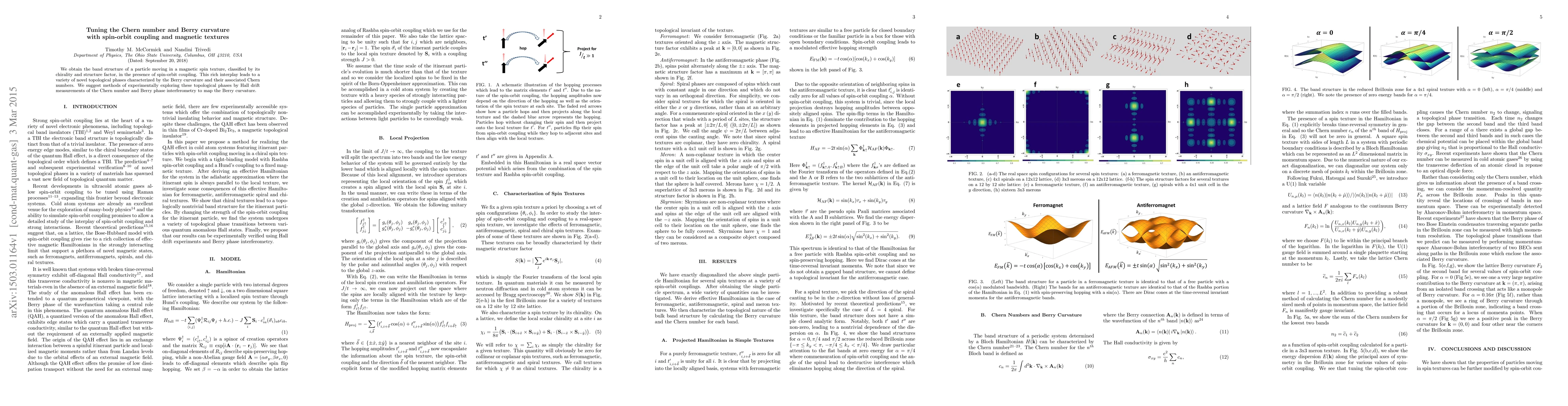 This paper investigates the band structure of particles in magnetic spin textures under spin-orbit coupling, revealing novel topological phases defined by Berry curvature and Chern numbers. Proposed experimental methods include Hall drift measurements and Berry phase interferometry for exploring these topological properties.